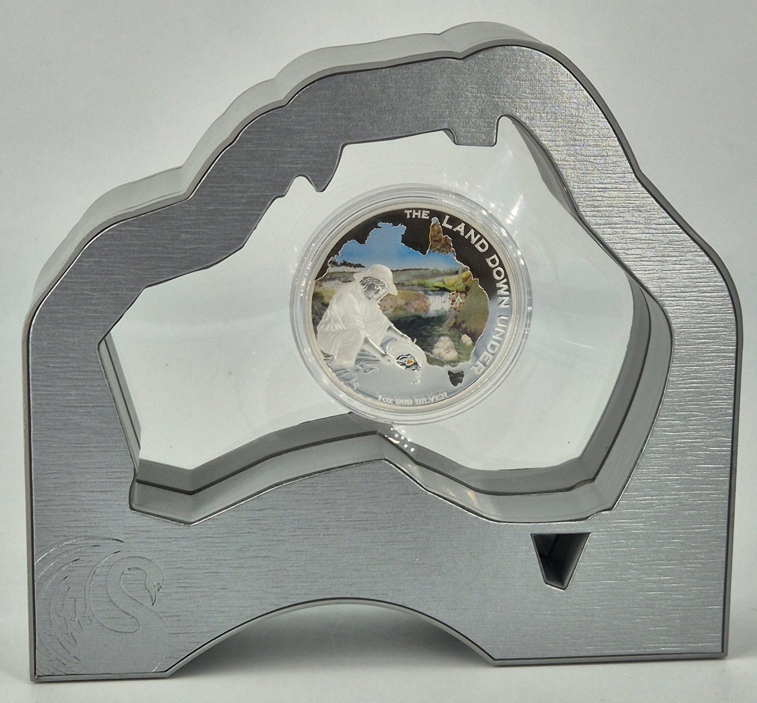 This 2014 1oz silver proof coin from the Perth Mint features a coloured design depicting Australia’s historic gold rush era. Part of The Land Down Under series, it commemorates the discoveries that helped shape a nation.