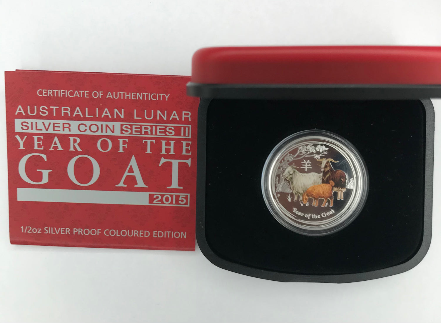 2015 50c 1/2oz Silver Proof Coloured Edition. Year of the Goat.