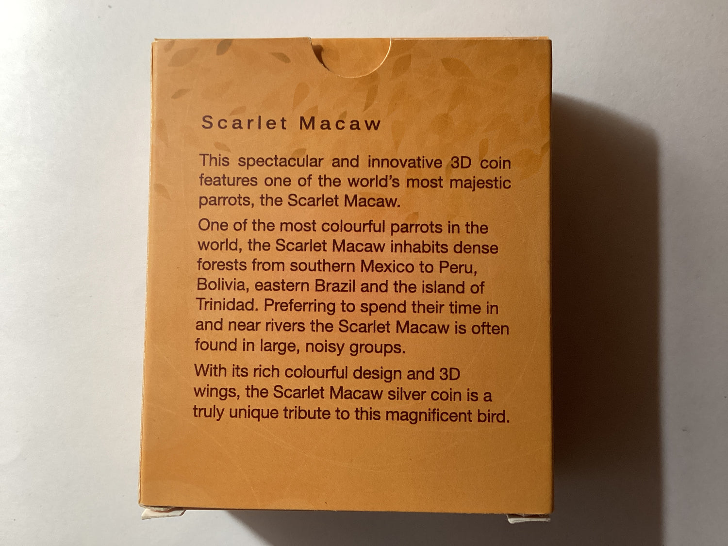 This limited edition coin is a prized collectible for bird enthusiasts and numismatists alike, celebrating the diversity and splendour of the world's parrot species. The Scarlet Macaw Silver Proof Coin exemplifies the Royal Australian Mint's dedication to combining artistic excellence with numismatic craftsmanship, making it a standout piece in any collection.