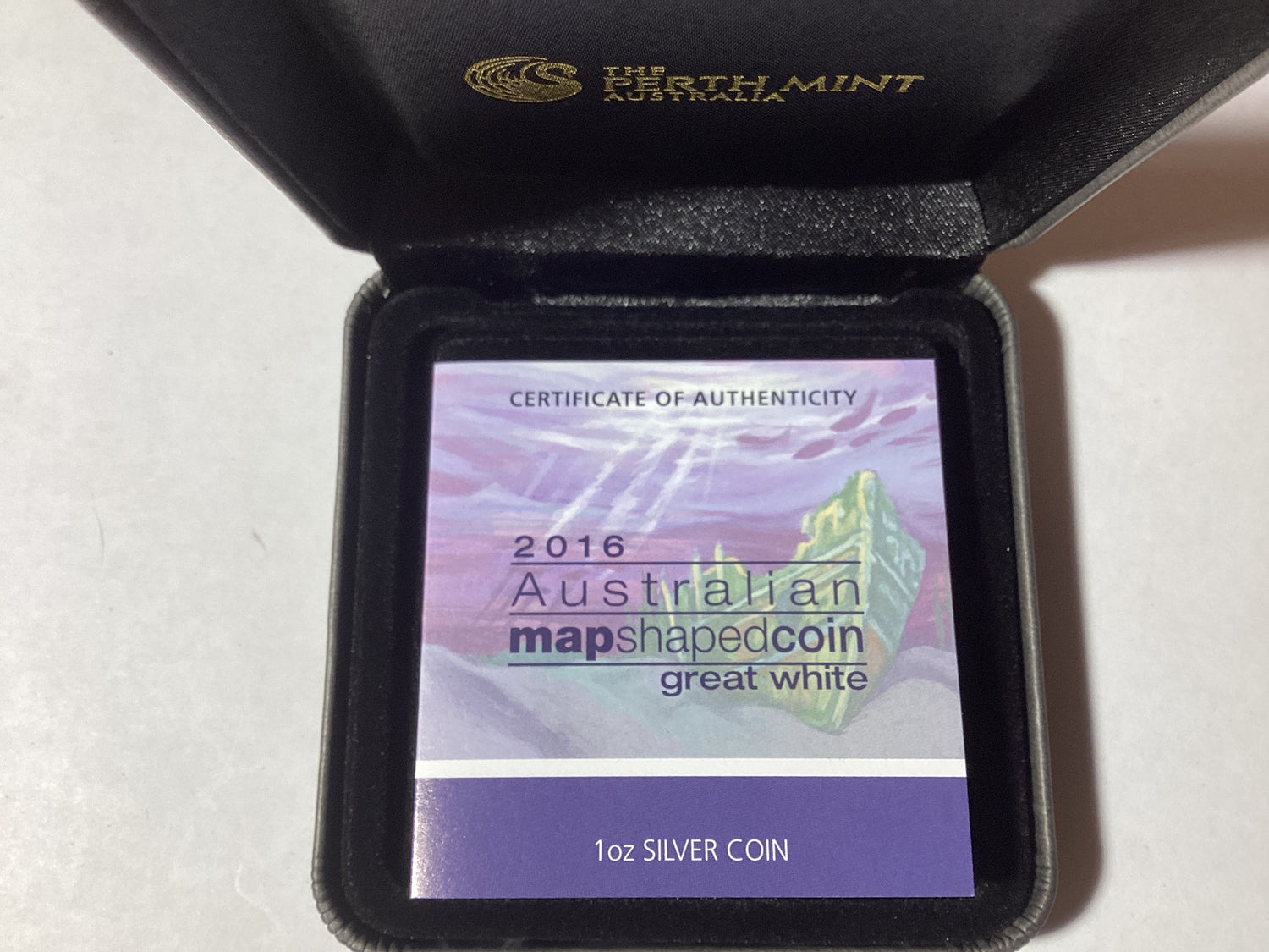 2016 $1 1oz Silver Proof Coin. Australian Map Shaped Coin Series. Great White Shark. is backordered and will ship as soon as it is back in stock.