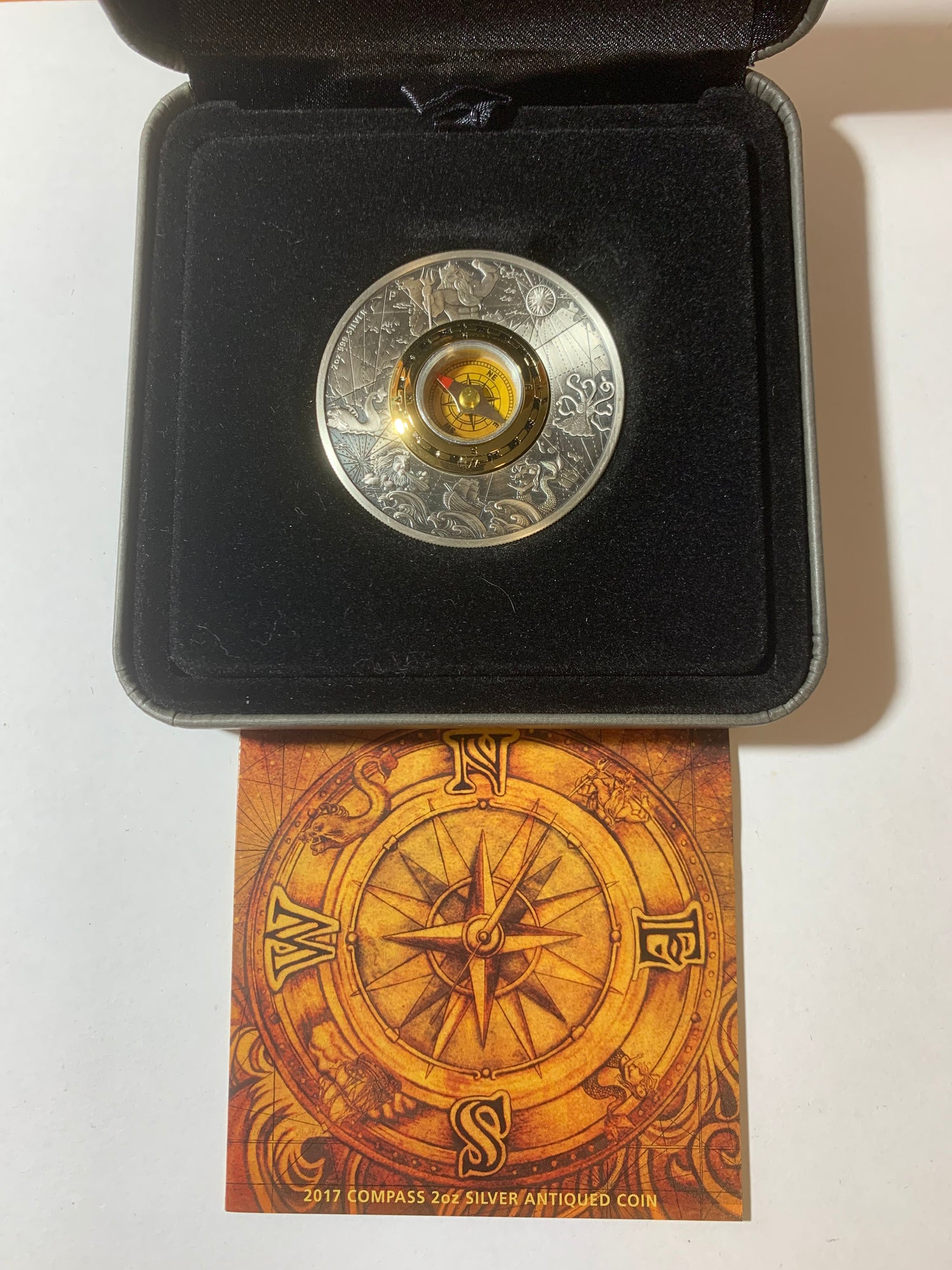 2017 $2 2oz Silver Antiqued Coin. Compass.