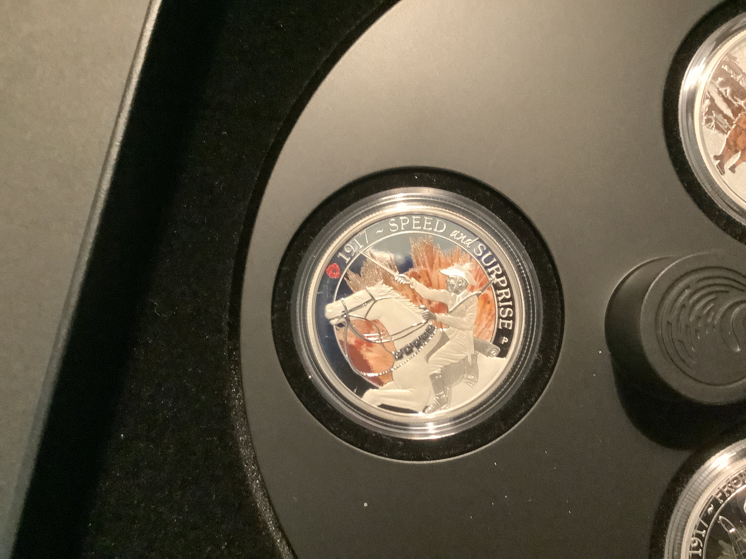 This three coin set was the first release of the 2014-2018 Anzac Spirit series. This set contains 3 1/2 ounce silver coins. These coins are the following. Front Line Angels, The Grim Path Back, Speed and Surprise.