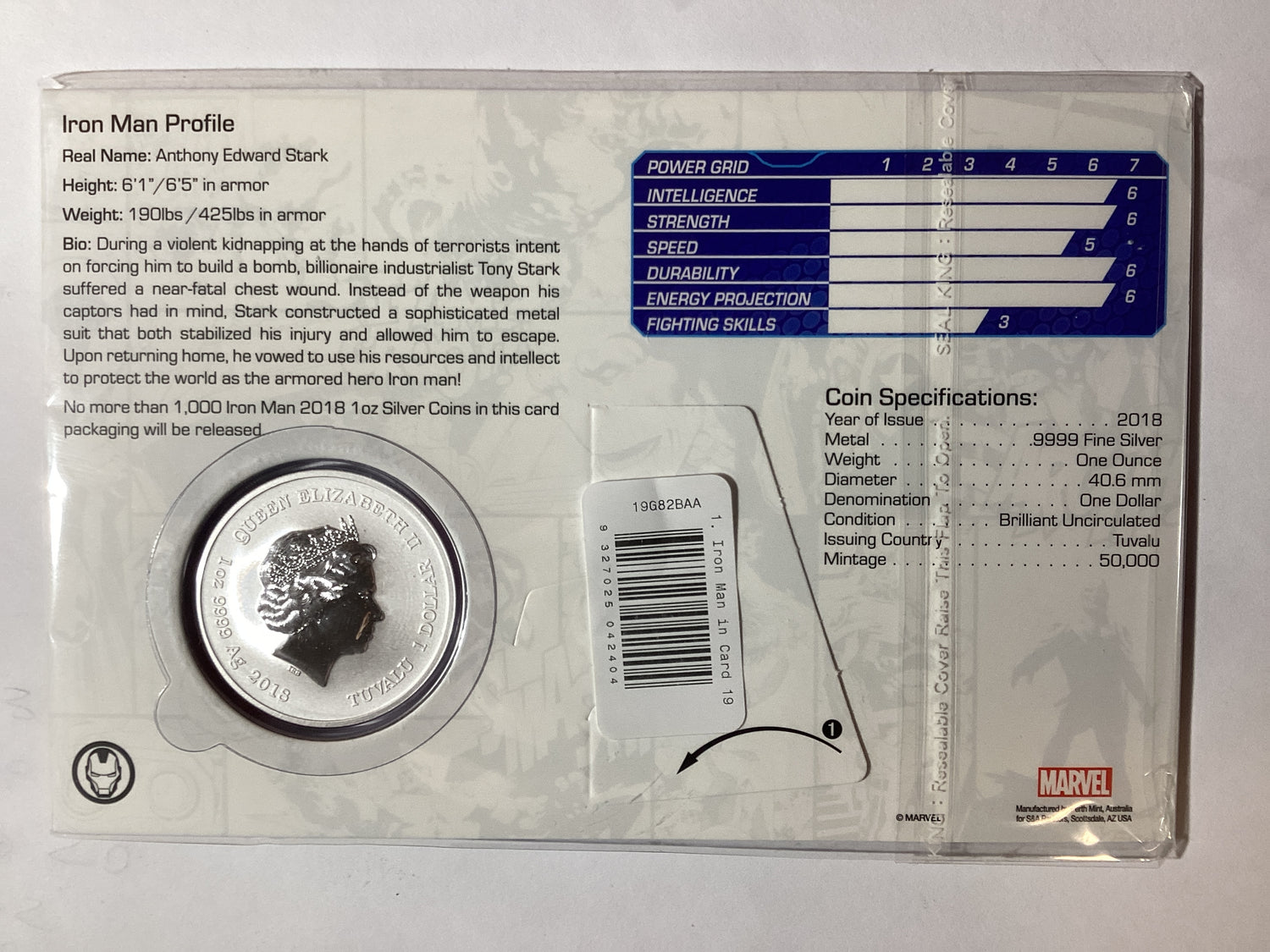2018 $1 1oz Silver Coin. Marvel. Iron Man.