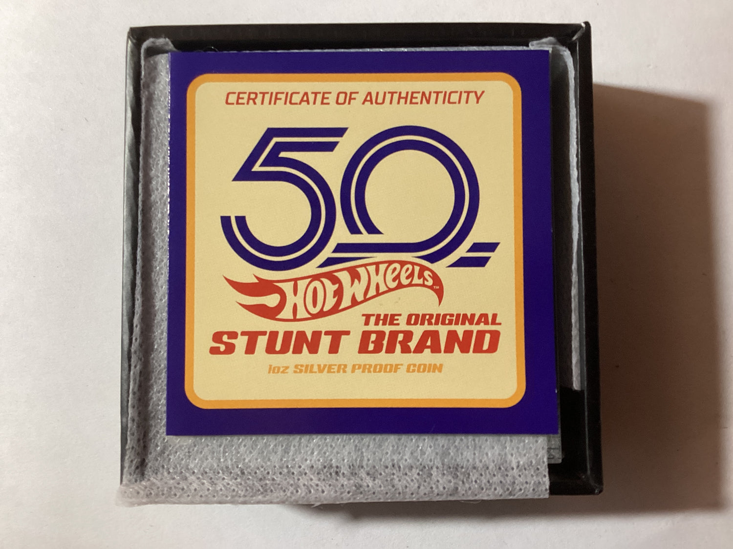 Struck from 99.9% pure silver, the coin combines detailed craftsmanship with numismatic excellence. With a limited mintage, this coin is a coveted collectible for fans of Hot Wheels and enthusiasts of pop culture, marking half a century of thrilling toy car adventures.