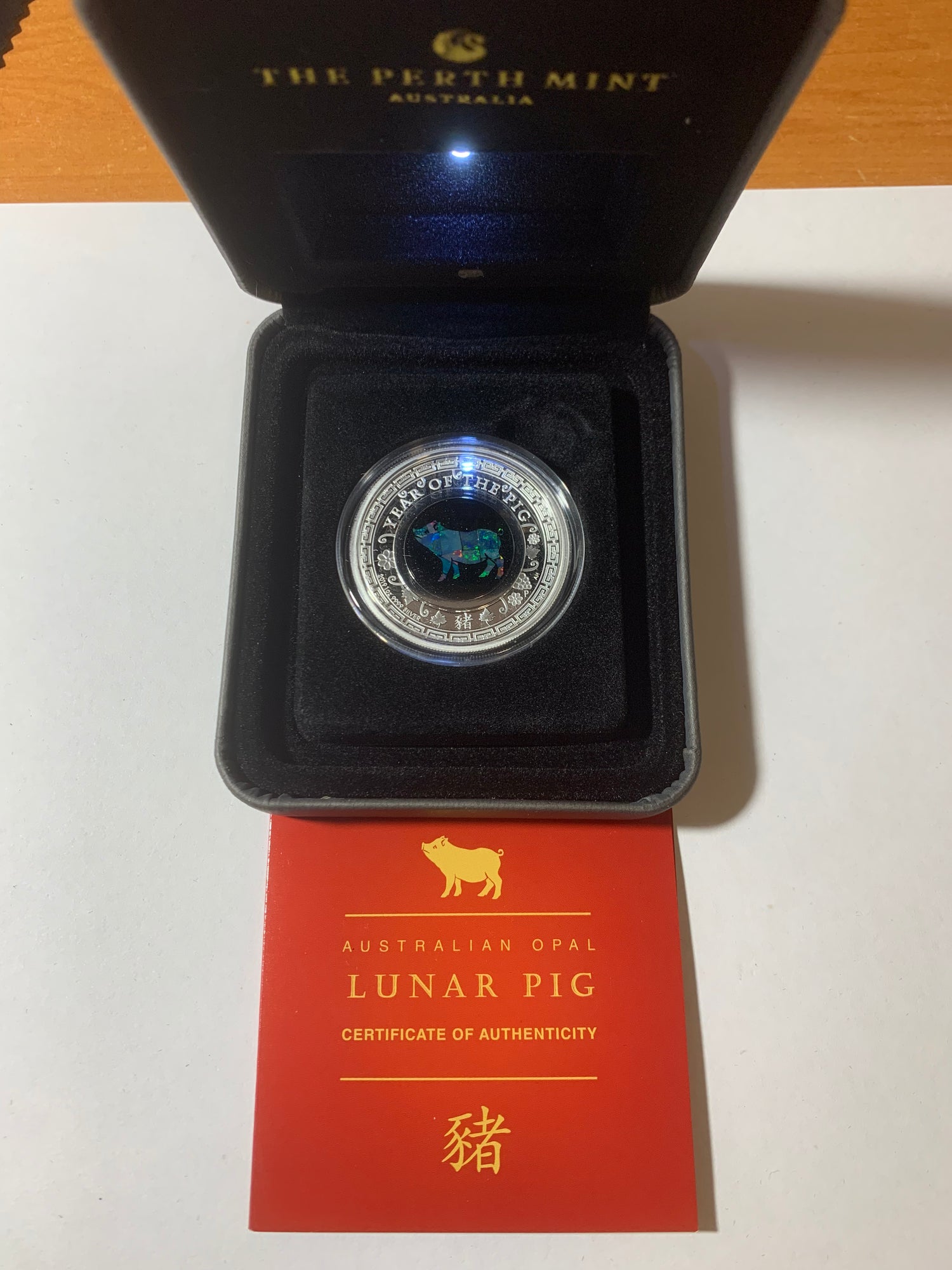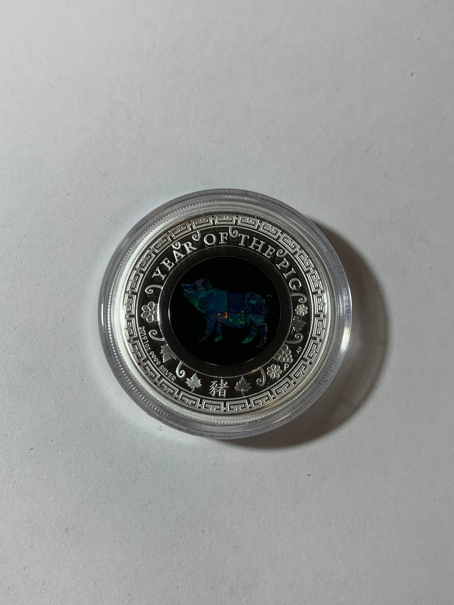 2019 $1 1oz Silver Proof Coin. Australian Opal Lunar Series. Year of the Pig.