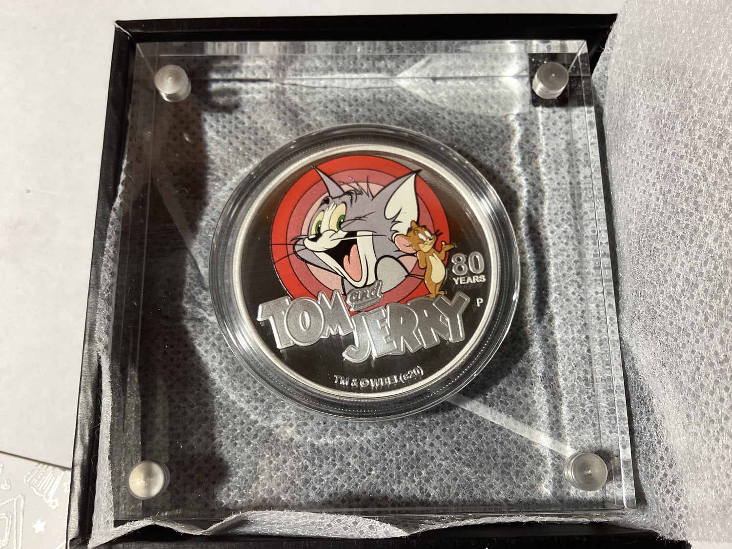 2019 $1 1oz Silver Proof Coloured Coin. Tom and Jerry.