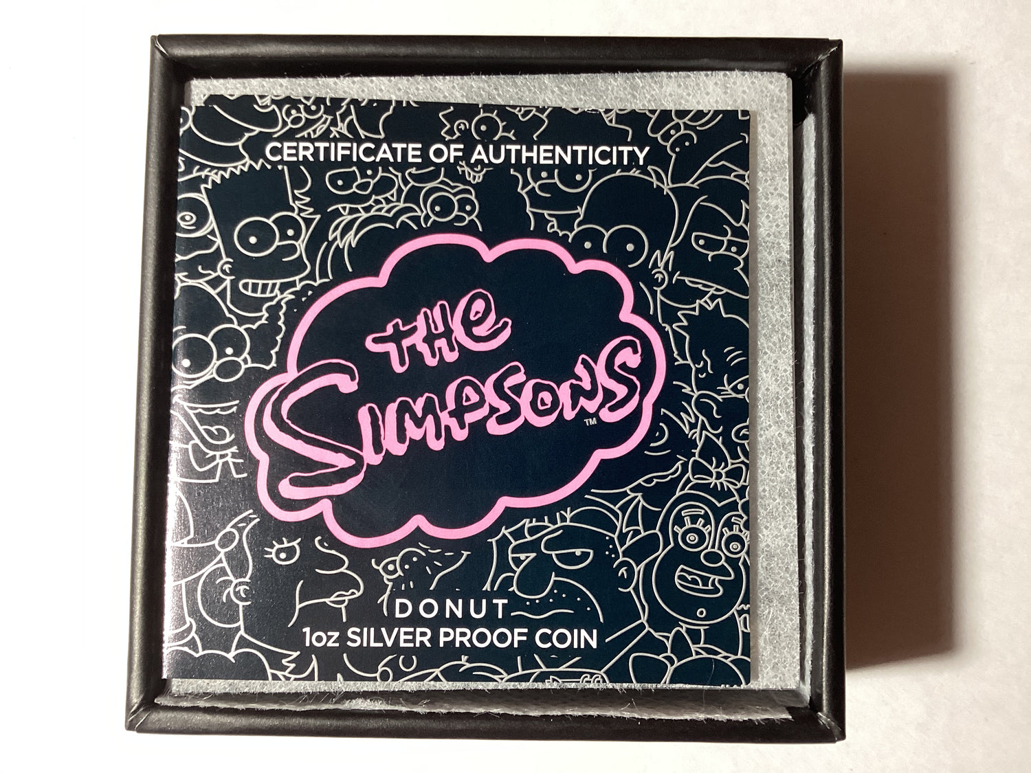 2019 $1 1oz Silver Proof Coloured Coin. The Simpsons. Donut. is backordered and will ship as soon as it is back in stock.