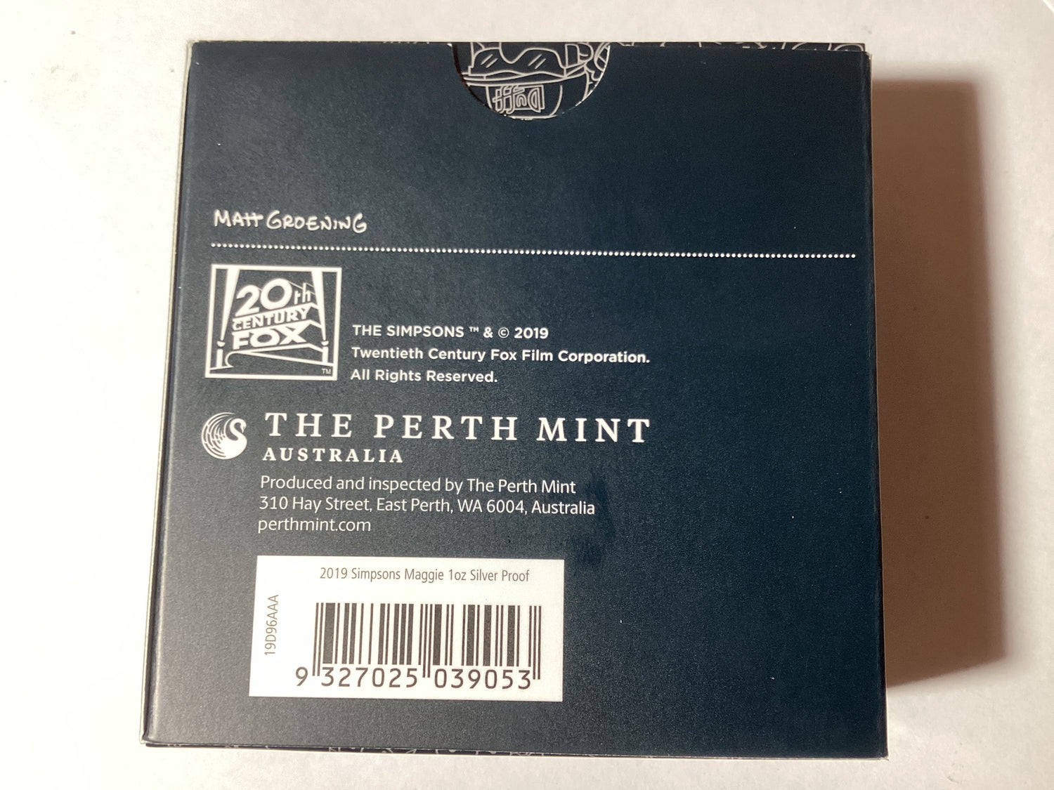 2019 $1 1oz Silver Proof Coloured Coin. The Simpsons. Maggie Simpson. is backordered and will ship as soon as it is back in stock.