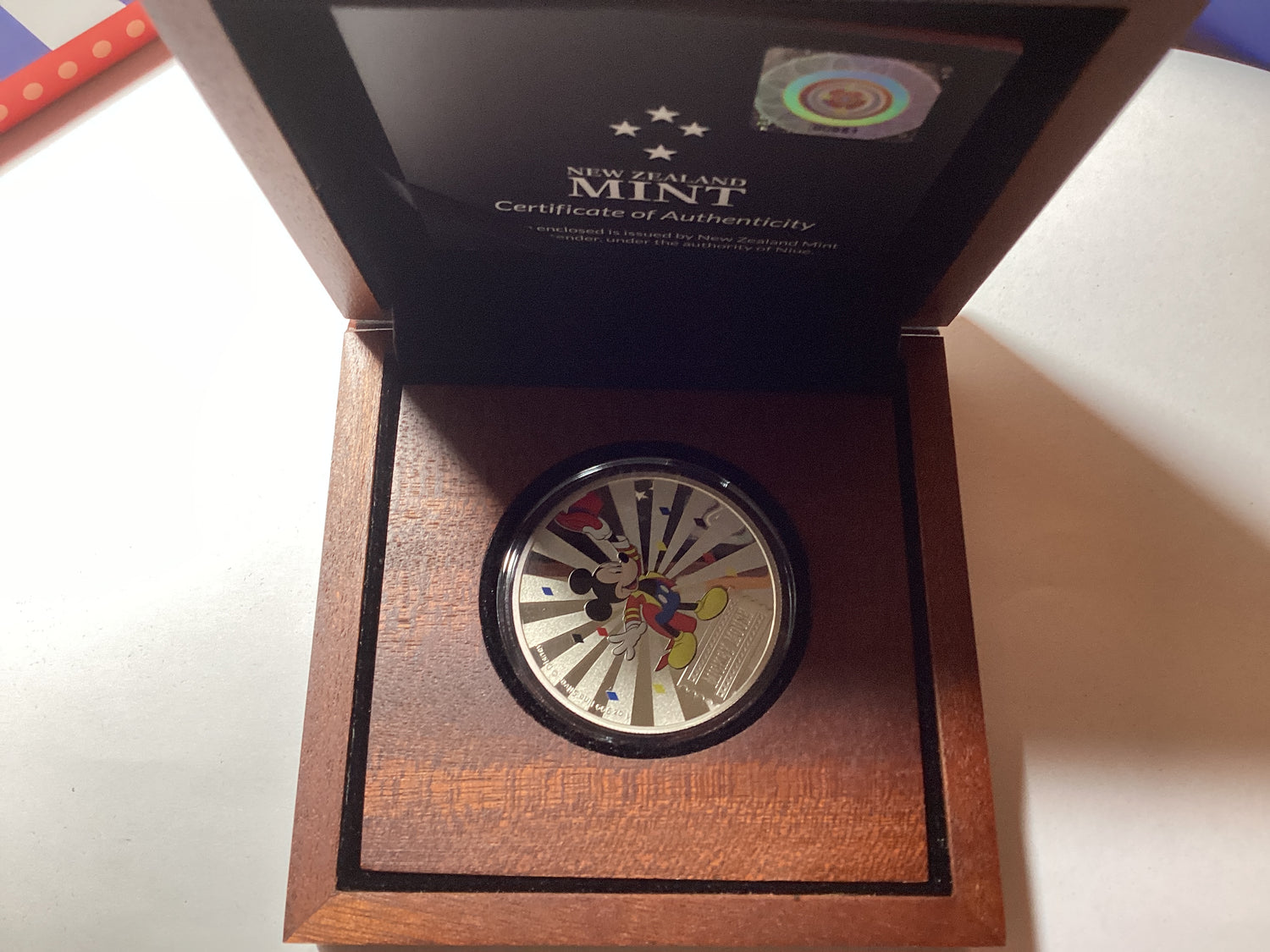2019 $2 1oz Silver Proof Coloured Coin. New Zealand Mint. Micky Mouse.