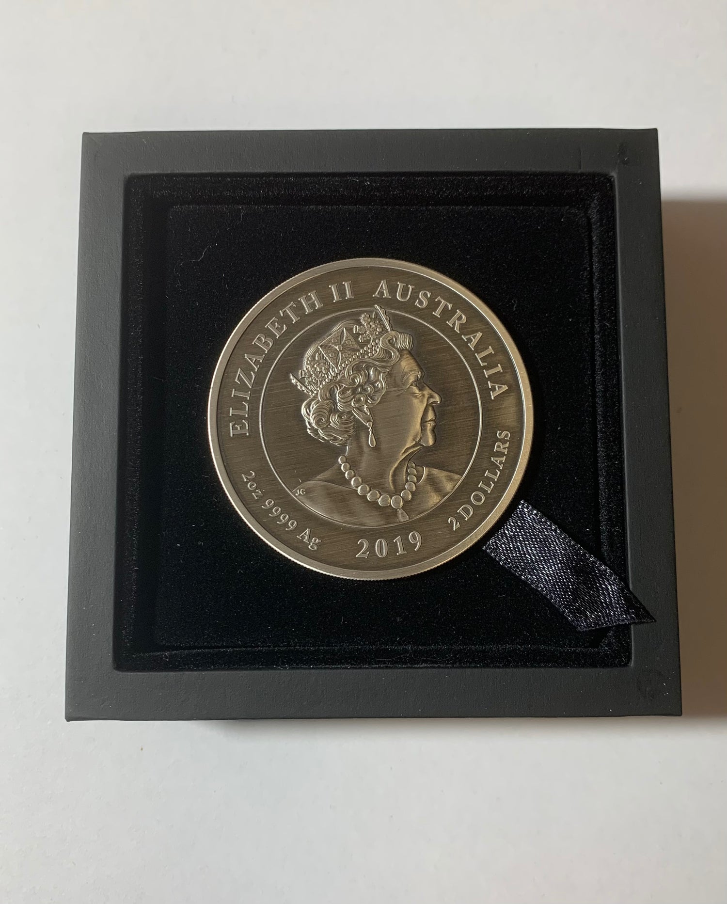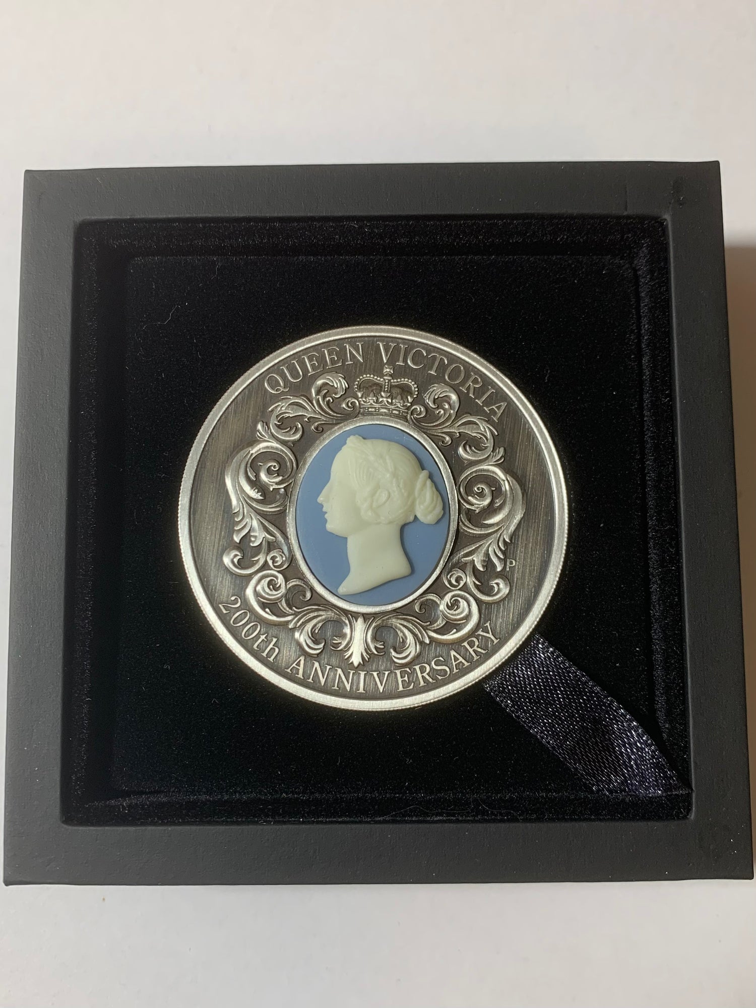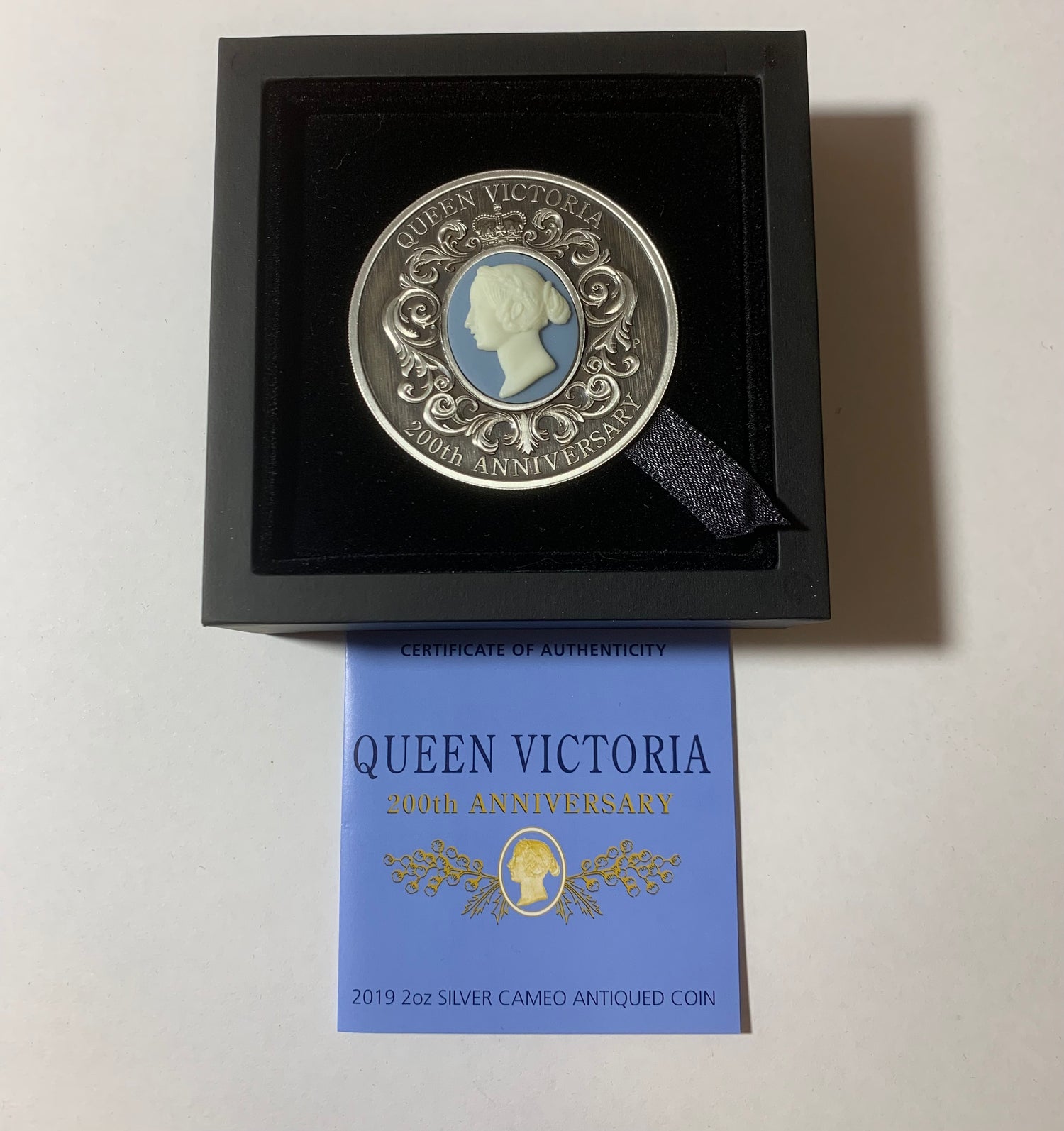 2019 $2 2oz Silver Cameo Antiqued Coin. Queen Victoria 200th Anniversary.