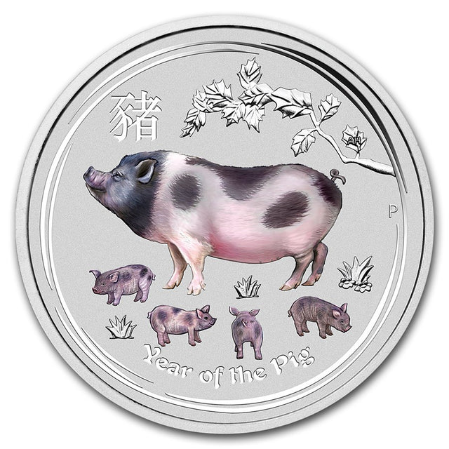2019 Australia 1/2 oz Silver Lunar Pig BU (Colorised)