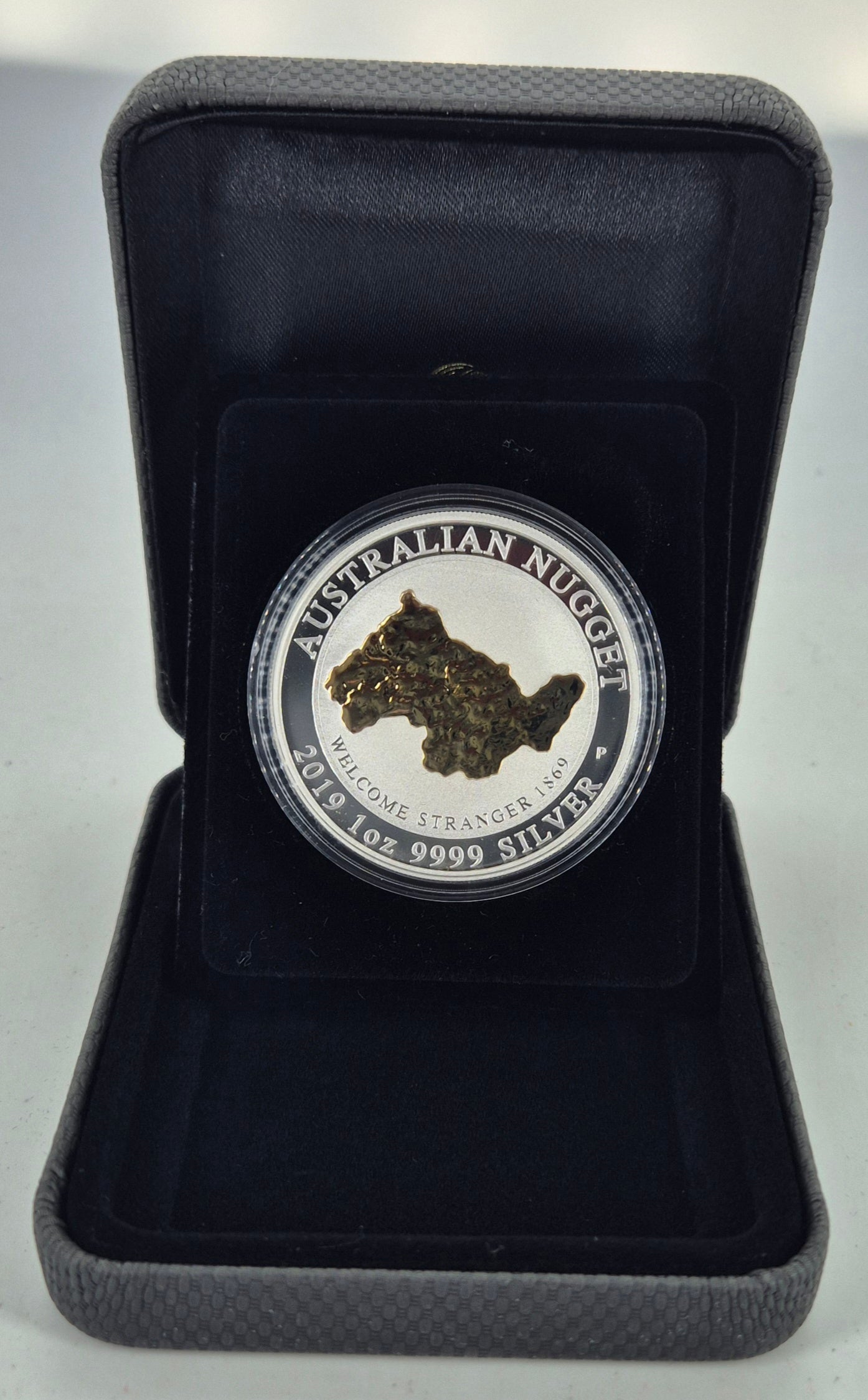 Issued by The Perth Mint for the 150th anniversary of the Welcome Stranger discovery, this 2019 release features a 1oz .9999 fine silver coin with 24-carat gold gilding over a detailed reverse of the world’s largest alluvial gold nugget. It comes in an illustrated presentation box with a numbered Certificate of Authenticity.