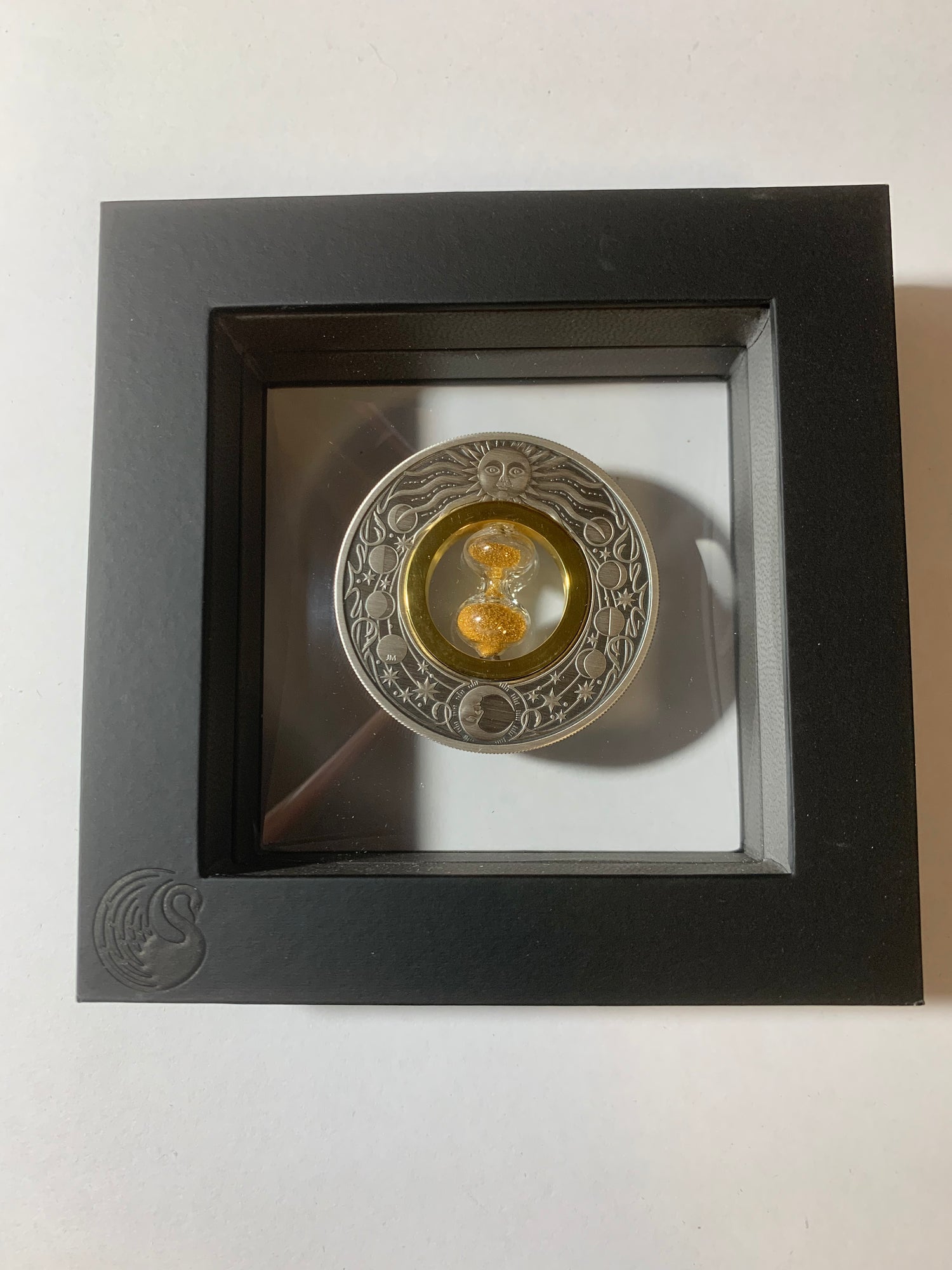2021 $2 2oz Silver Antiqued Coin. Hourglass.