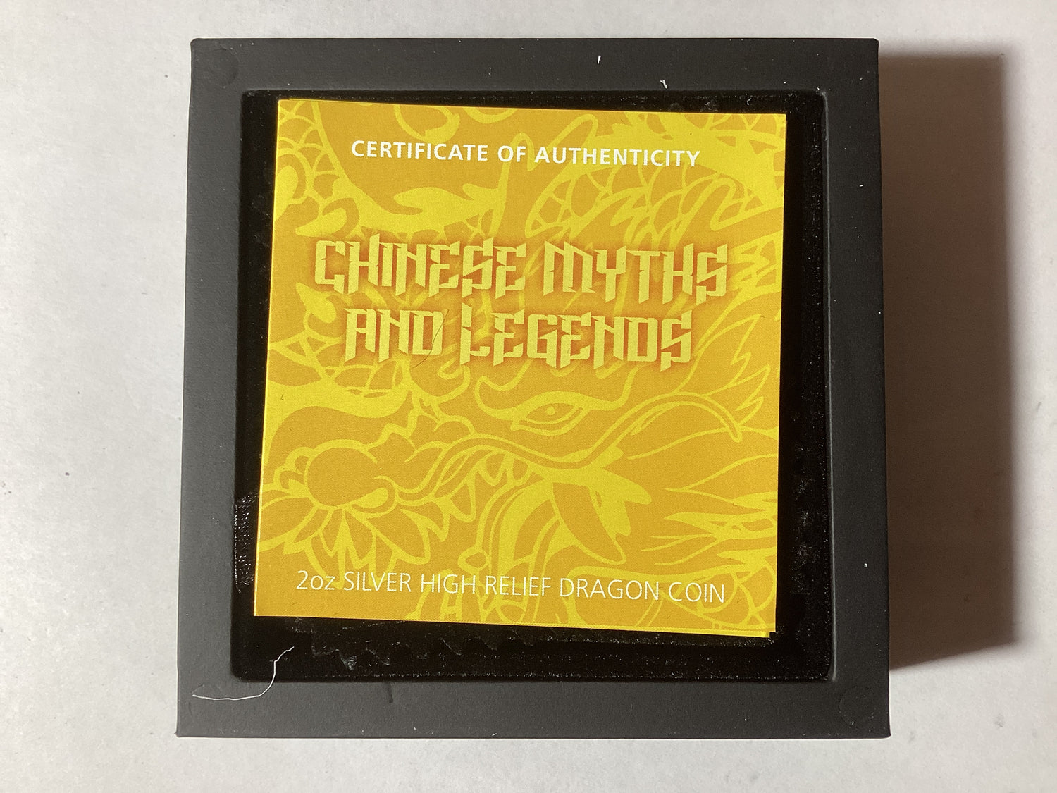 2021 $2 2oz Silver High Relief Dragon Coin. Chinese Myths and Legends.