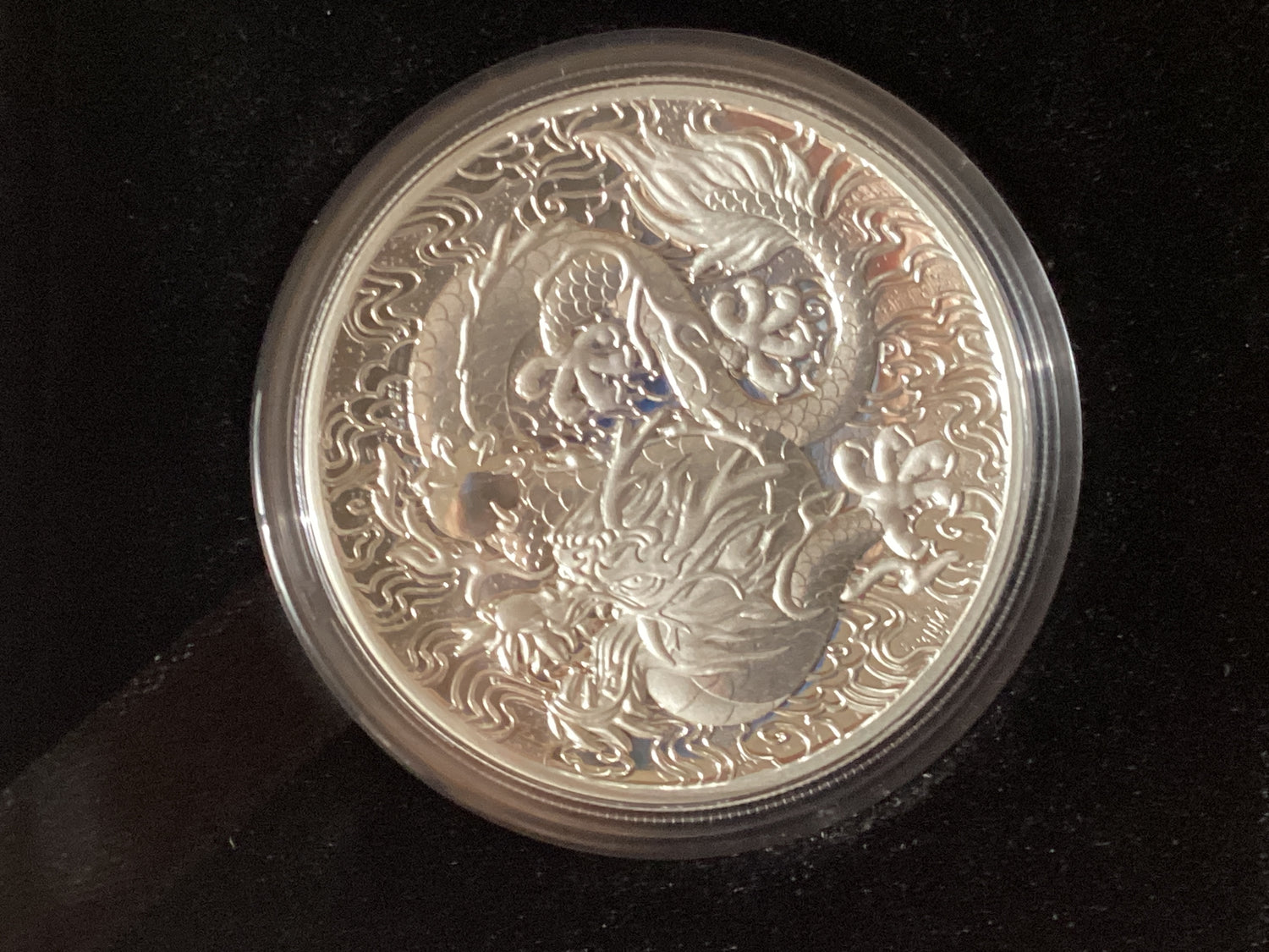 Crafted from 2 ounces of pure silver, the intricate details of the dragon, from its fierce expression to its coiling body, are brought to life with exceptional clarity and depth.