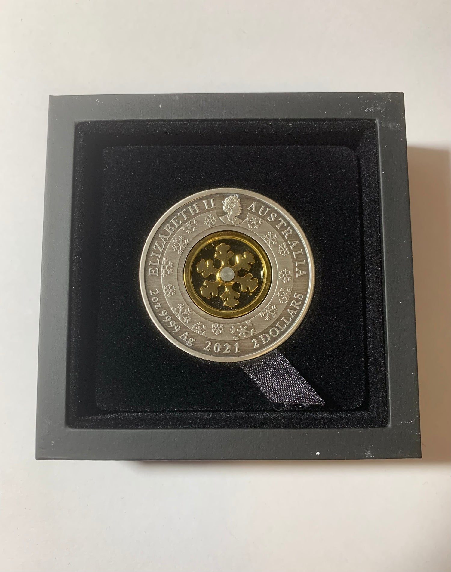 2021 $2 2oz Silver Proof Coin. Christmas Wonderland. Antiqued Coloured Coin.