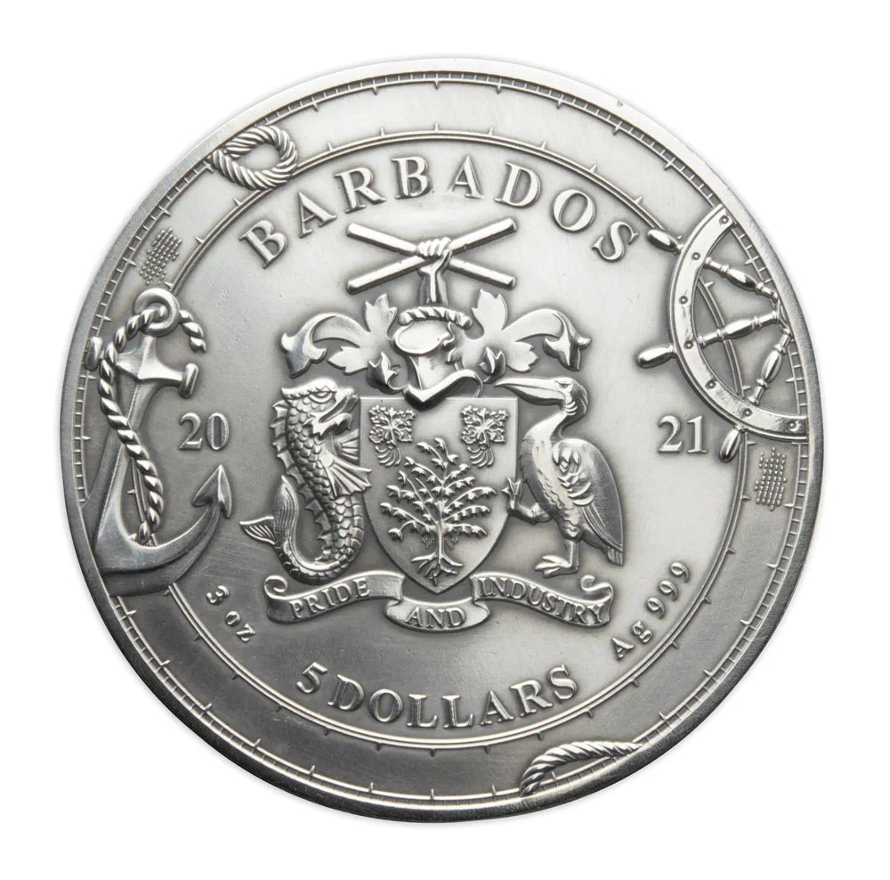 2021 $5 Barbados 3oz Silver Proof Coin - Magellan 1485-1521 500th Anniversary