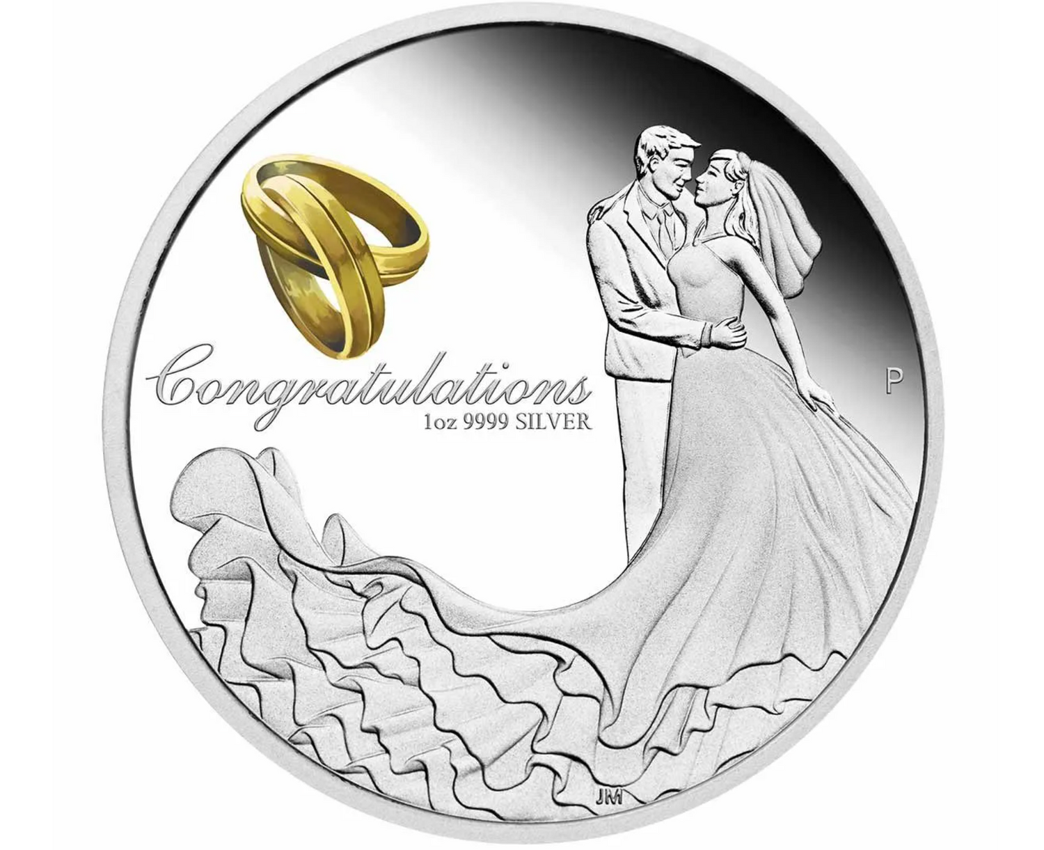 This 1 ounce proof pure silver coins celebrates weddings in Australia in 2022. This coin was struck by the Perth Mint.