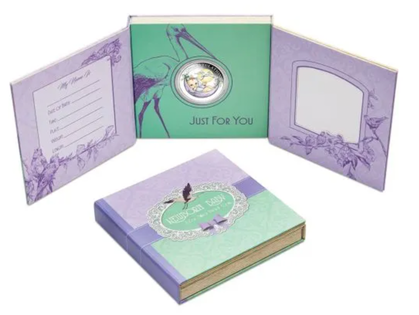 This Perth Mint released coin is the perfect gift to welcome a newborn into the family. This proof coin contains a 1/2 ounce of 99.99% fine silver.