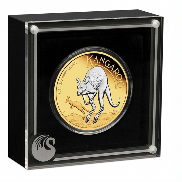 2022 Australian Kangaroo 2oz Silver Reverse Gilded Coin