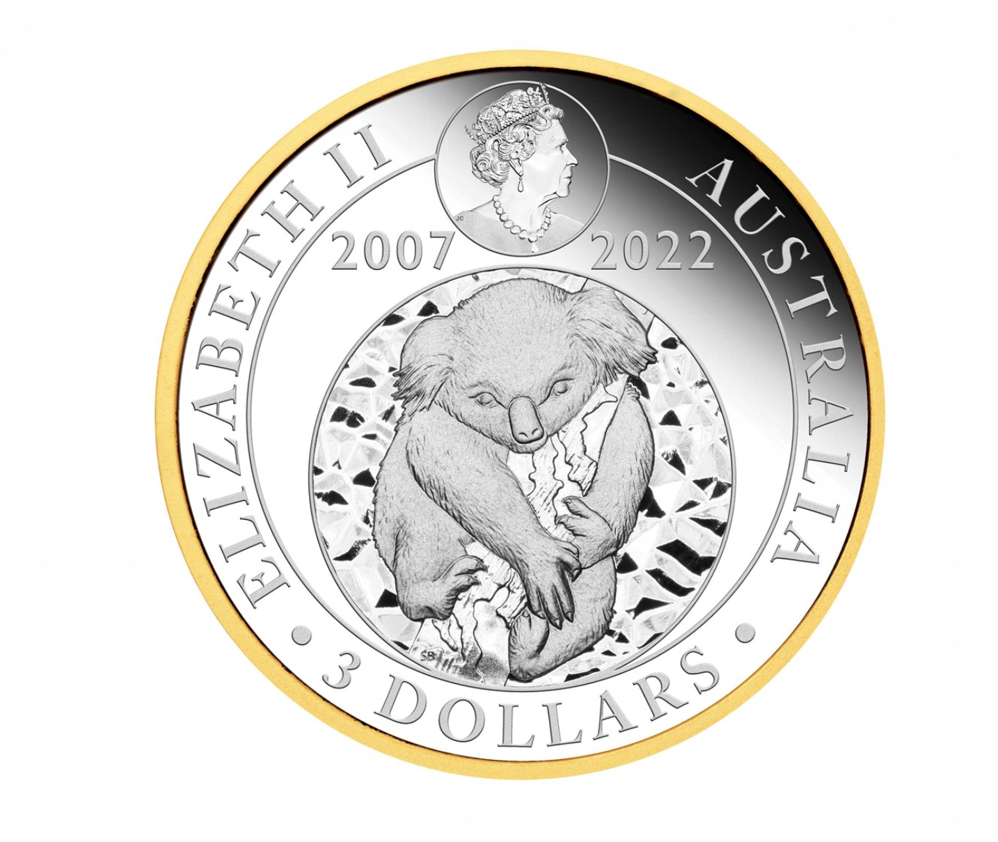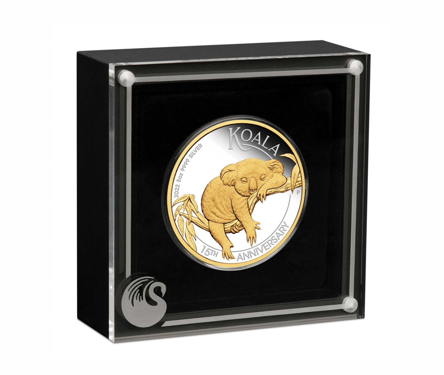 2022 Australian Koala 15th Anniversary 3oz Silver Proof Gilded Coin