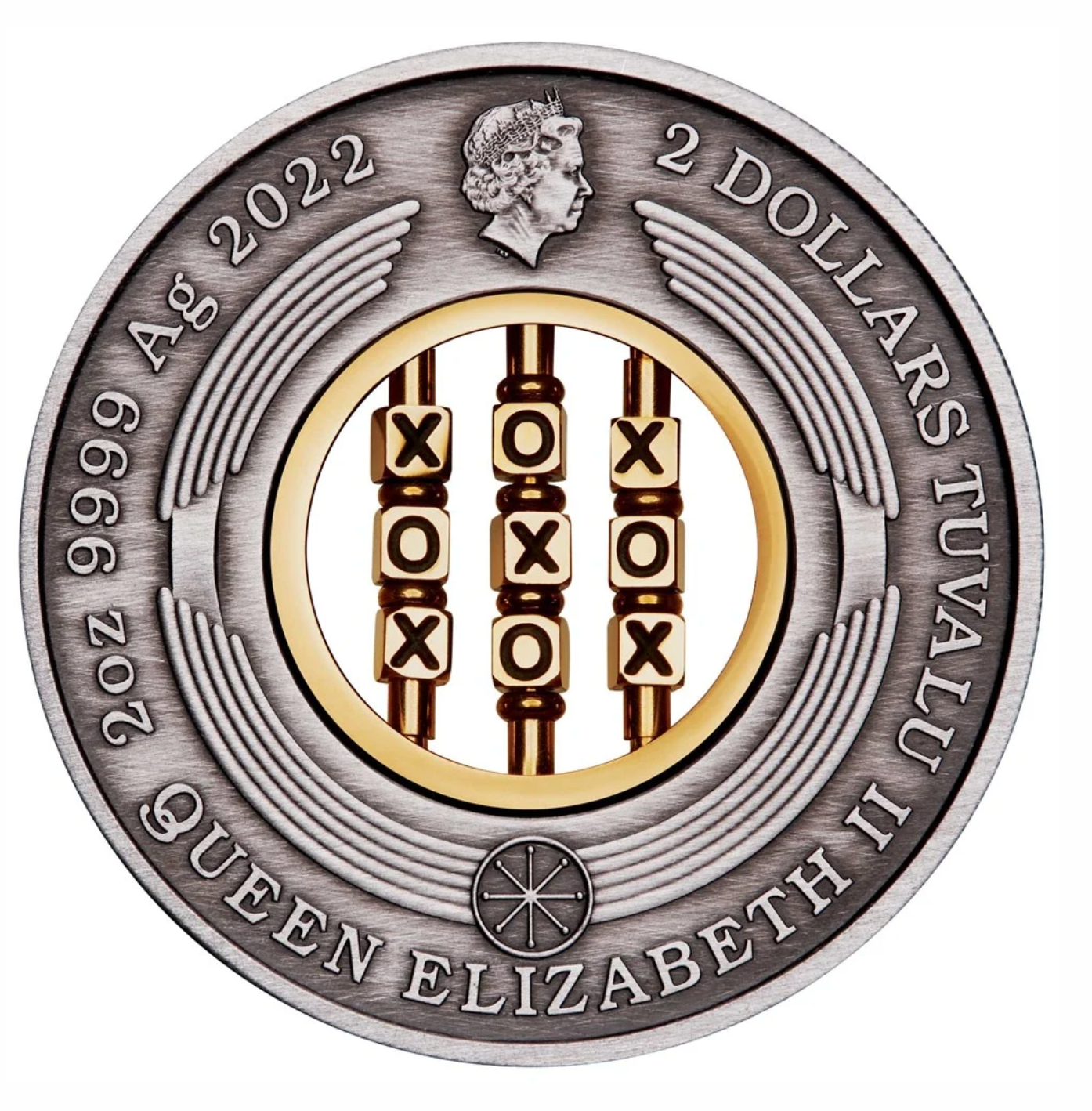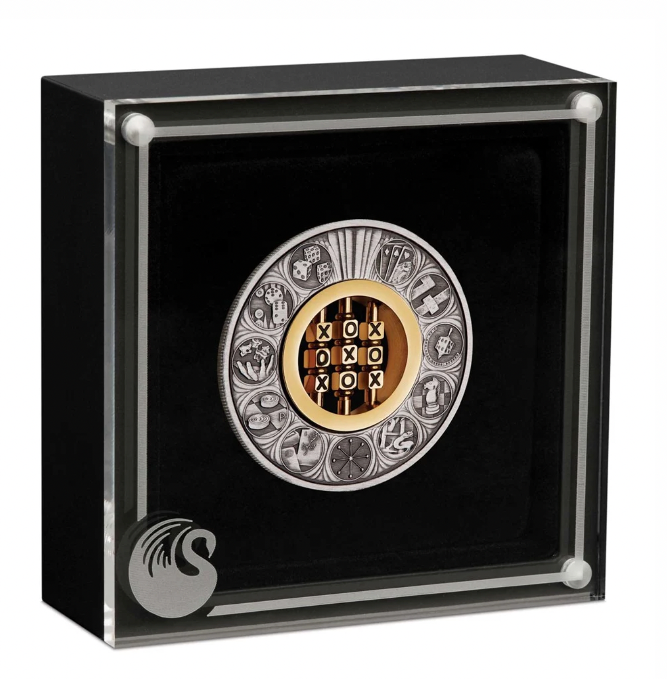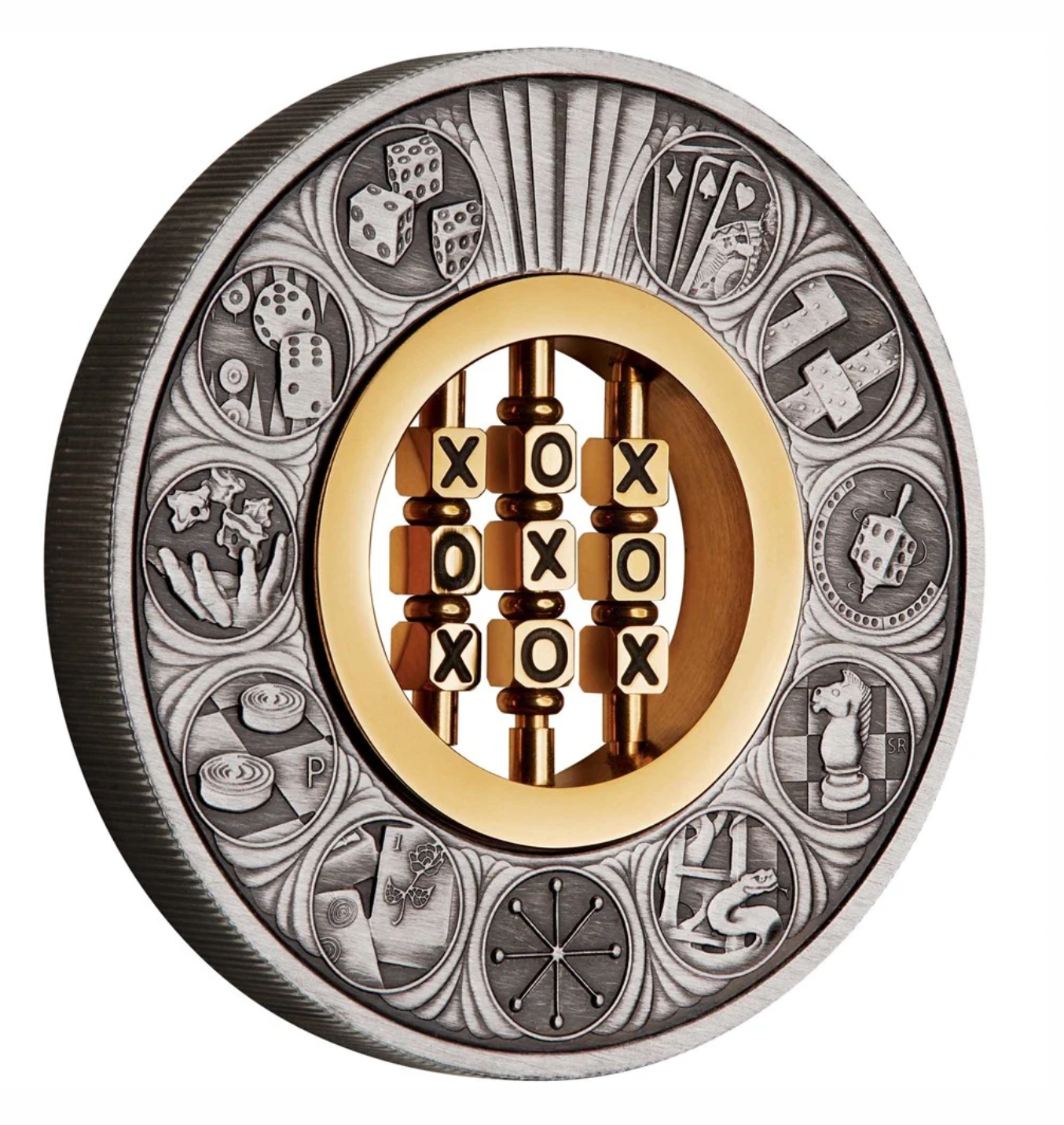 This unique 2oz antiqued silver piece pays tribute to games embedded in human culture for hundreds, if not thousands of years, and their on-going relevance as a source of family fun.