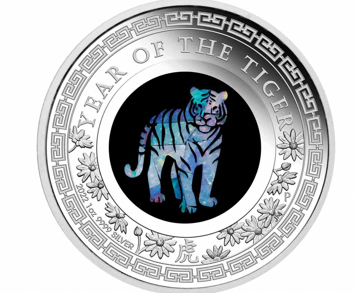 2022 Year of the Tiger $1 Opal 1oz Silver Proof Coin.