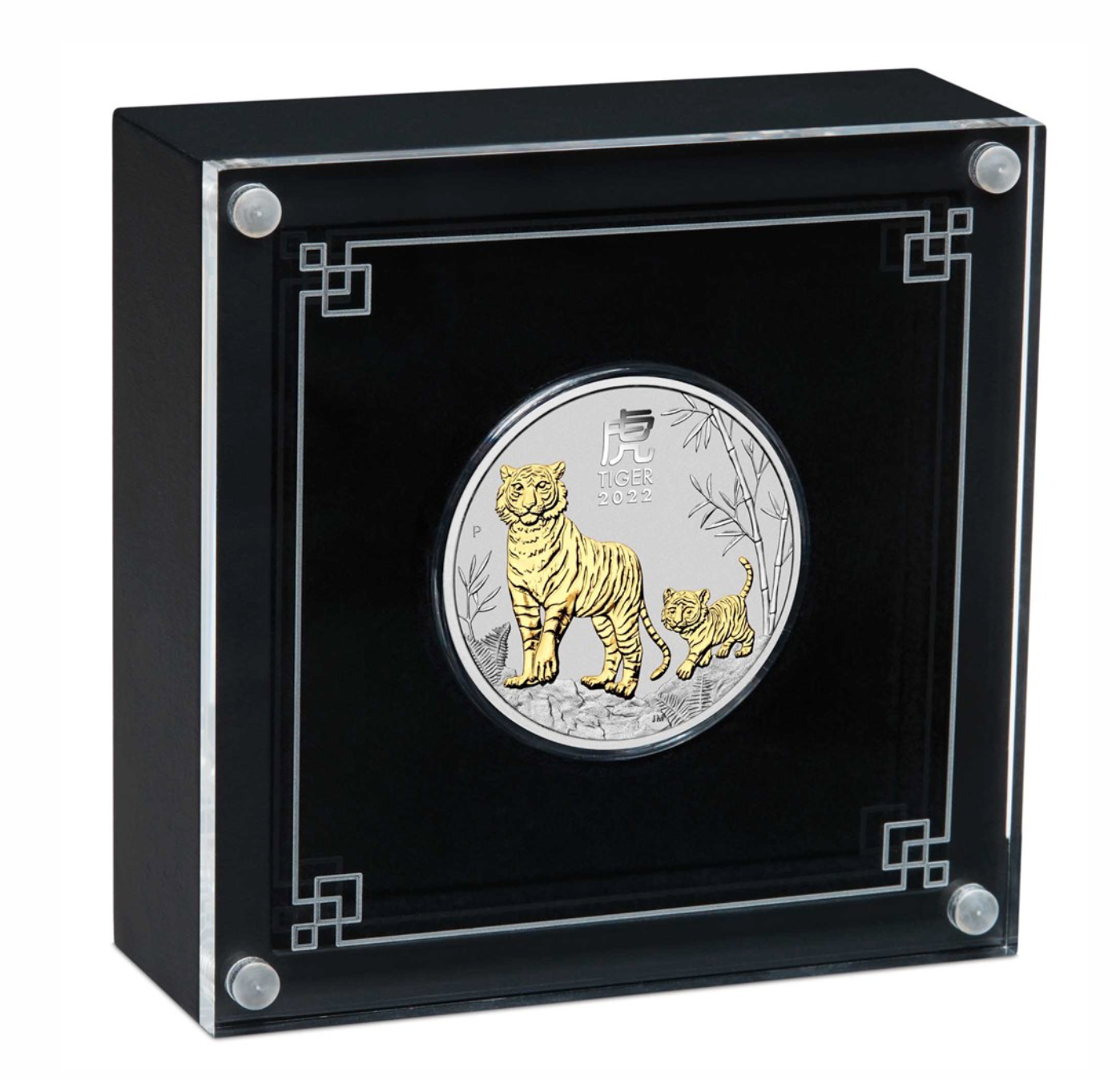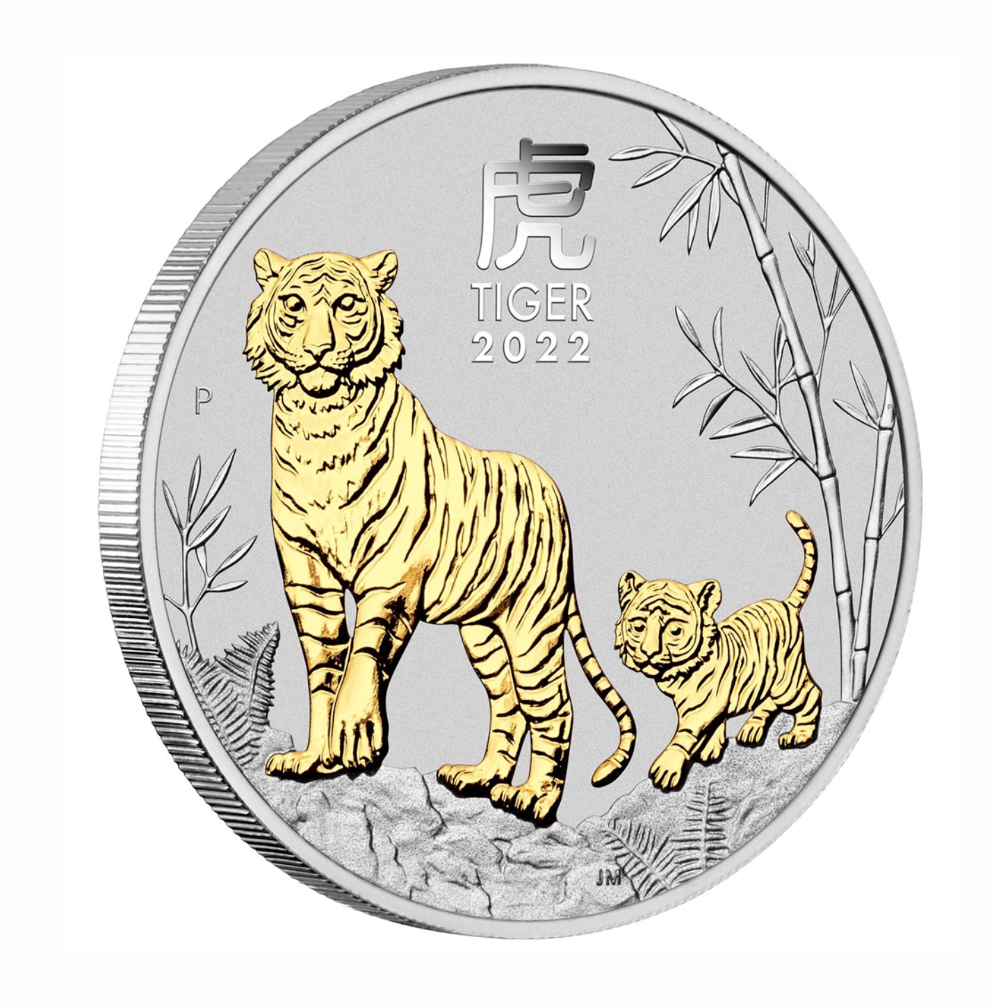 2022 Year of the Tiger. 1 Ounce Silver Gilded Coin