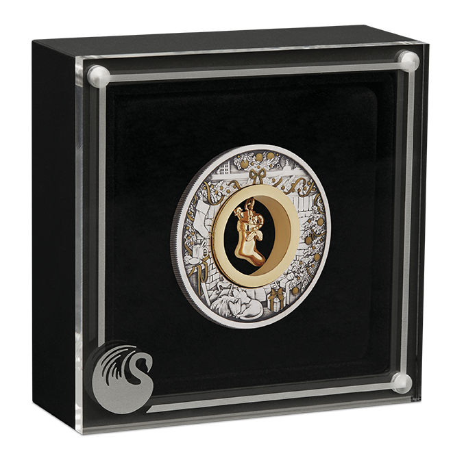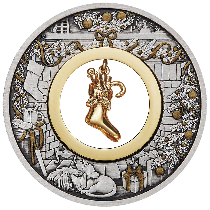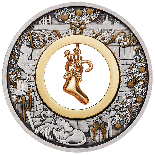 This exquisite coin features a beautifully antiqued design that captures the warmth and magic of the holiday season.