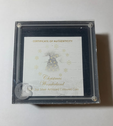 2021 $2 2oz Silver Proof Coin. Christmas Wonderland. Antiqued Coloured Coin.