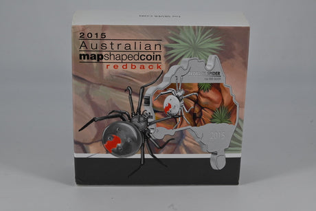 2015 $1 1oz Silver Proof Coin. Australian Map Shaped Coin – Redback Spider.
