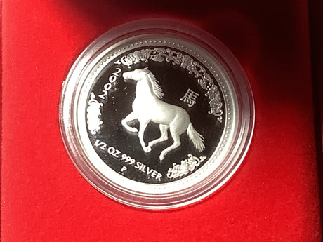 2002 $2 Australian Proof Lunar Silver Coin Series. Year of the Horse 2-ounce silver coin.