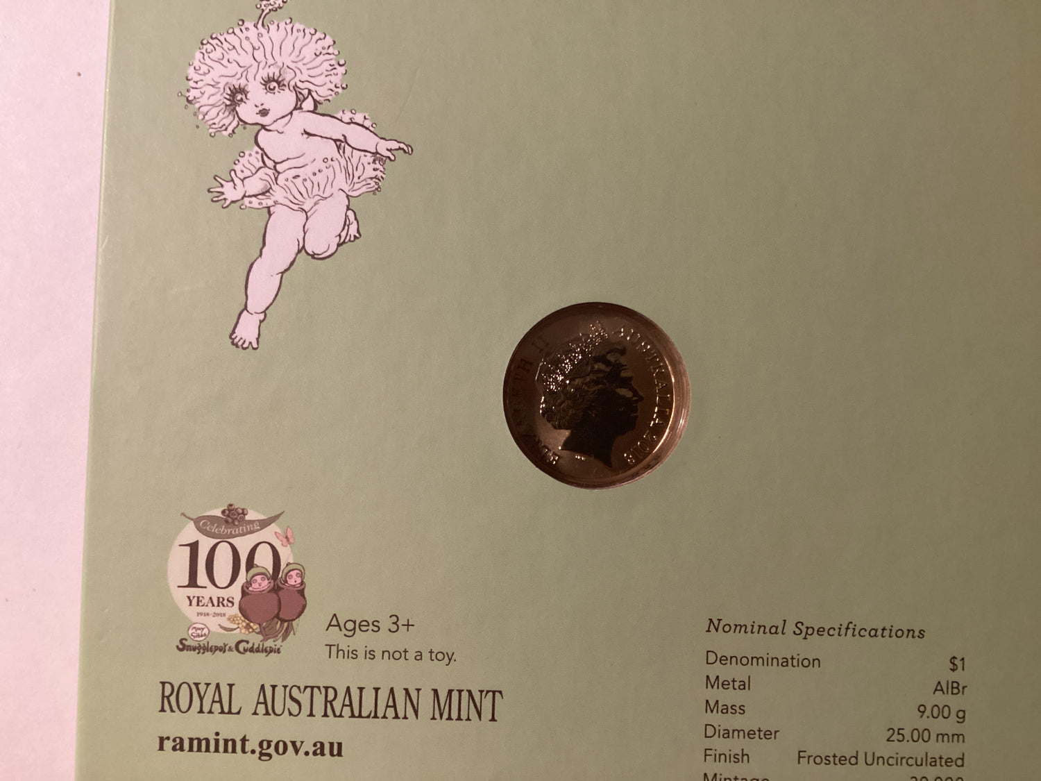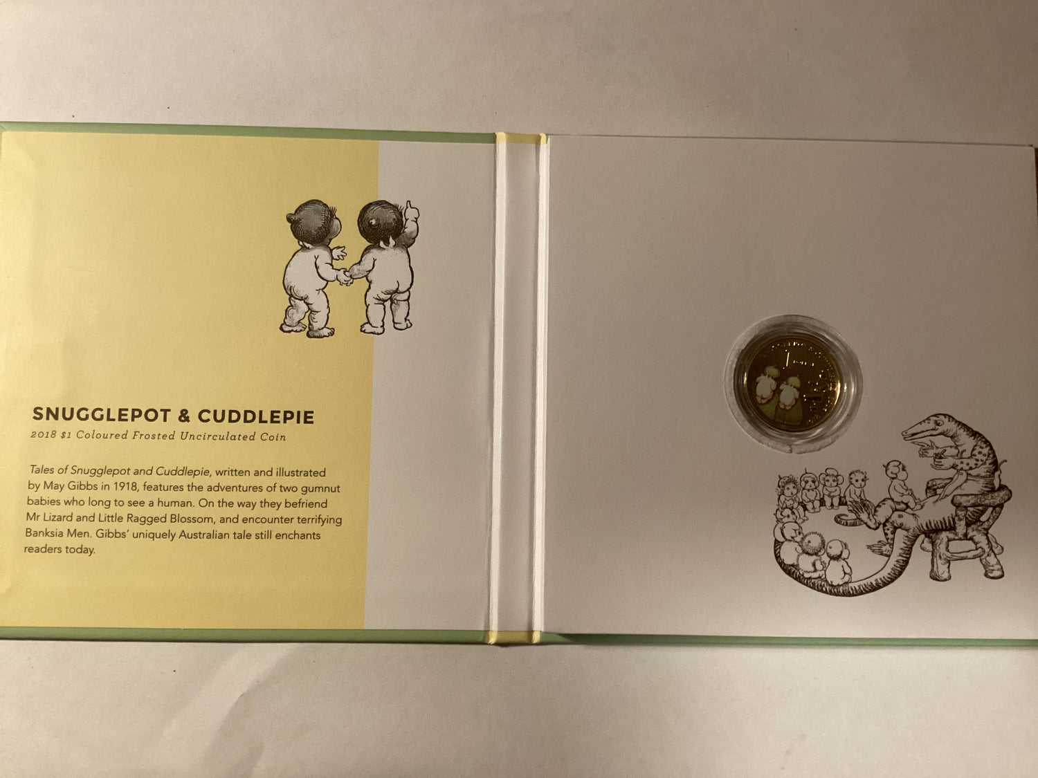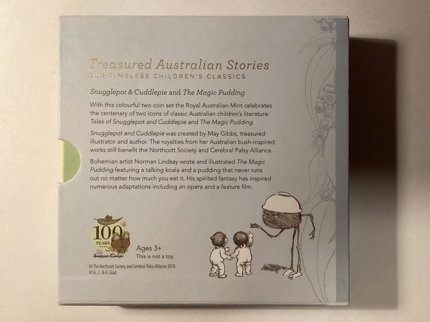 Released in 2018, this two-coin frosted uncirculated set celebrates Snugglepot & Cuddlepie and the Magic Pudding.