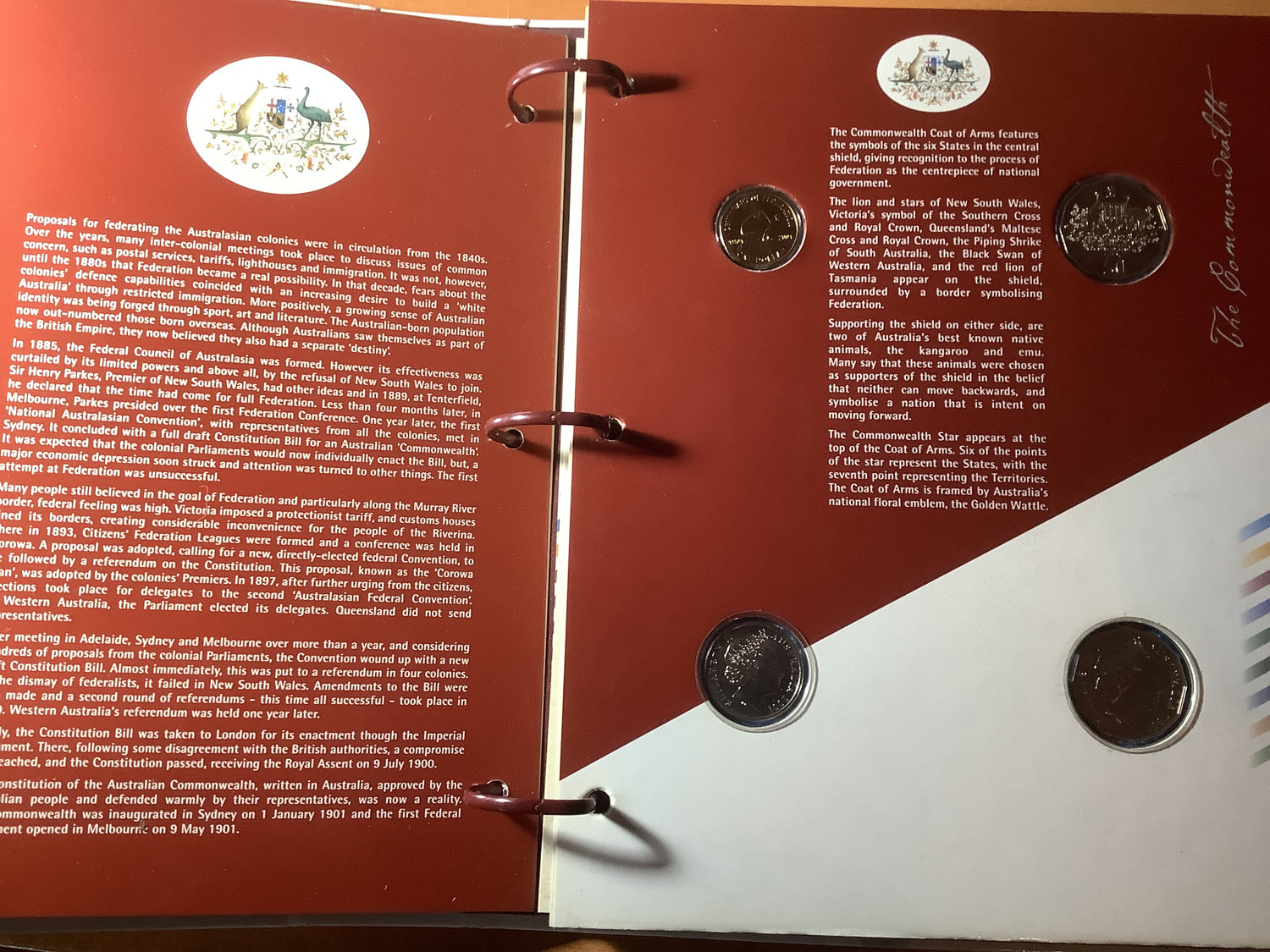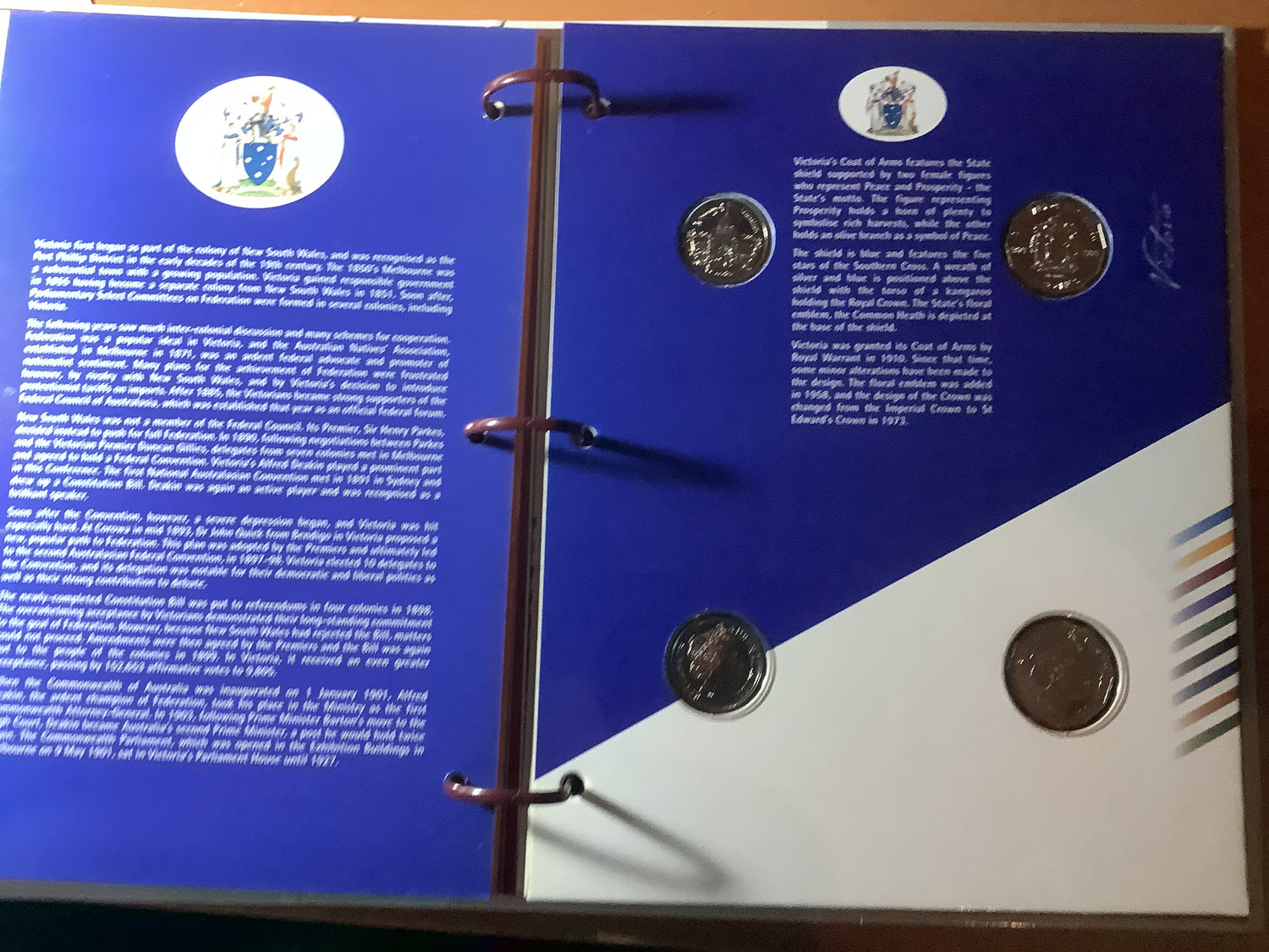 This 20-coin uncirculated folder and set features all of the 20c, and 50c coins released as part of the 2001 federation celebrations.