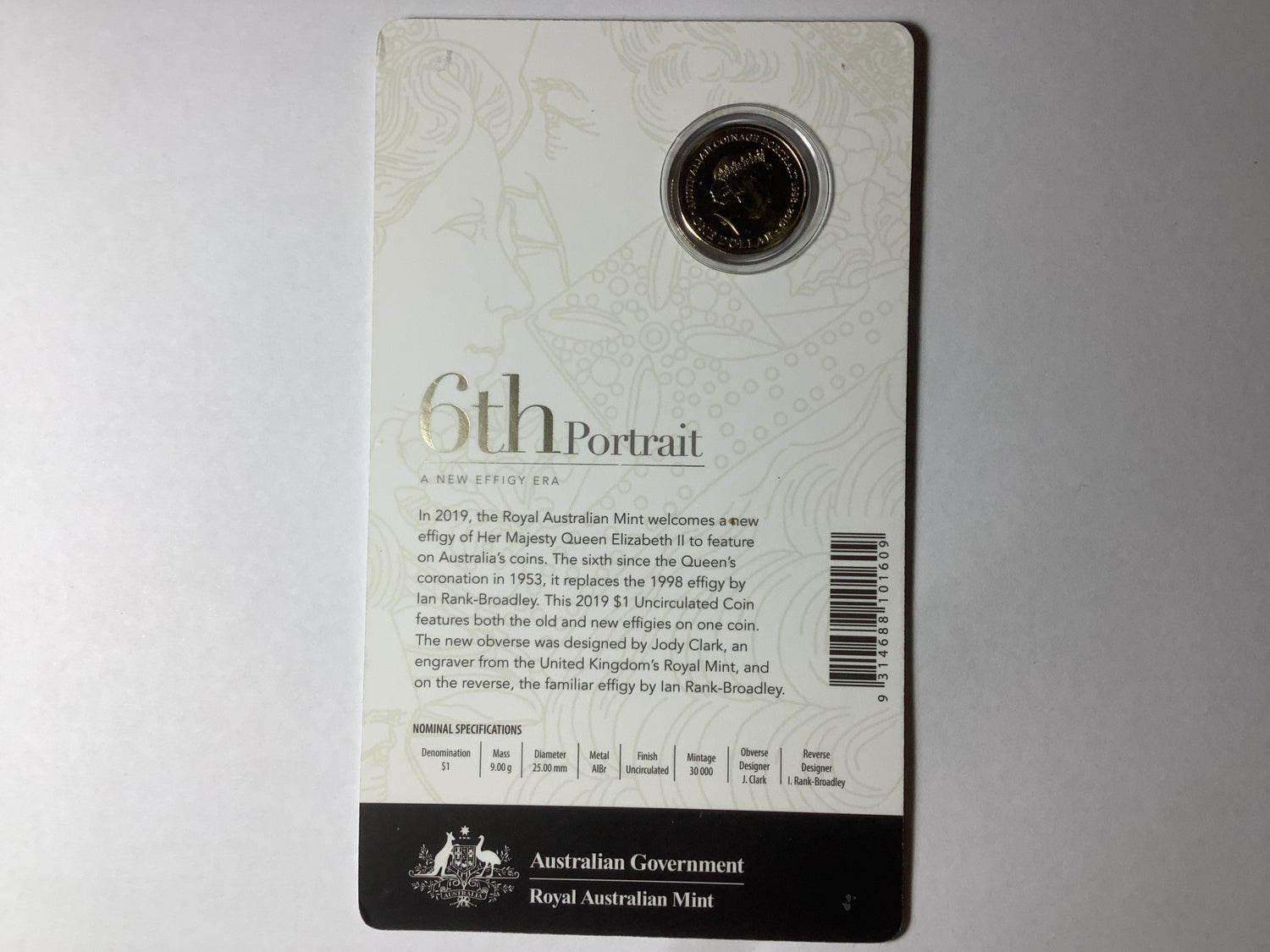 2019 $1 6th Portrait A New Effigy Era Uncirculated Coin.