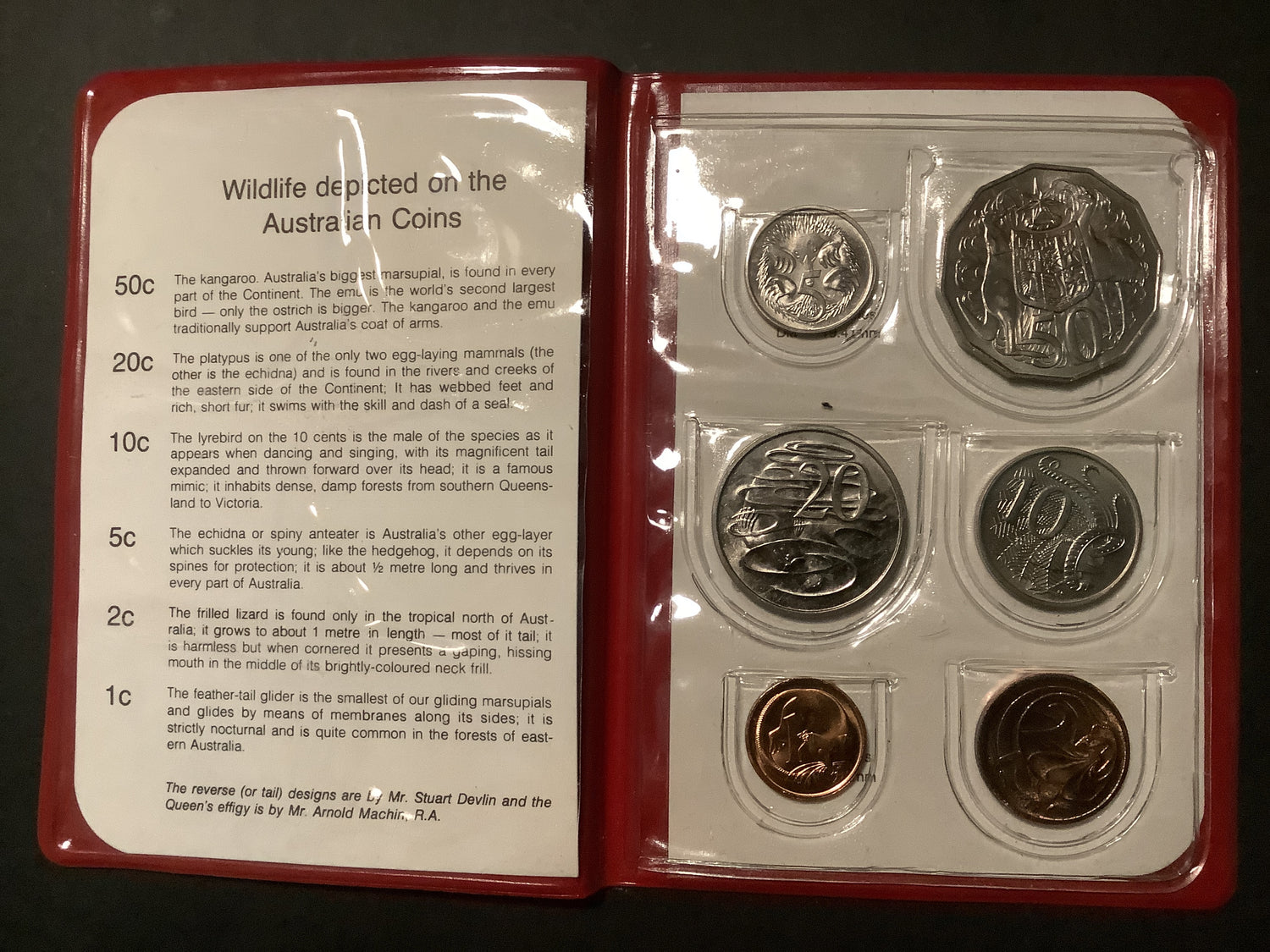 Included are the 1 cent, 2 cent, 5 cent, 10 cent, 20 cent, and 50 cent coins, highlighting Australia's unique wildlife and cultural emblems.