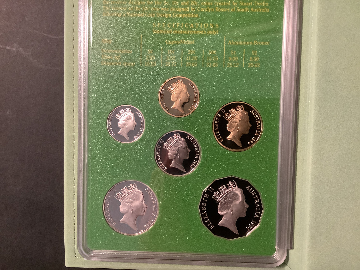 Included are the 5 cent, 10 cent, 20 cent, 50 cent, $1 and $2 coins, highlighting Australia's unique wildlife and cultural emblems.