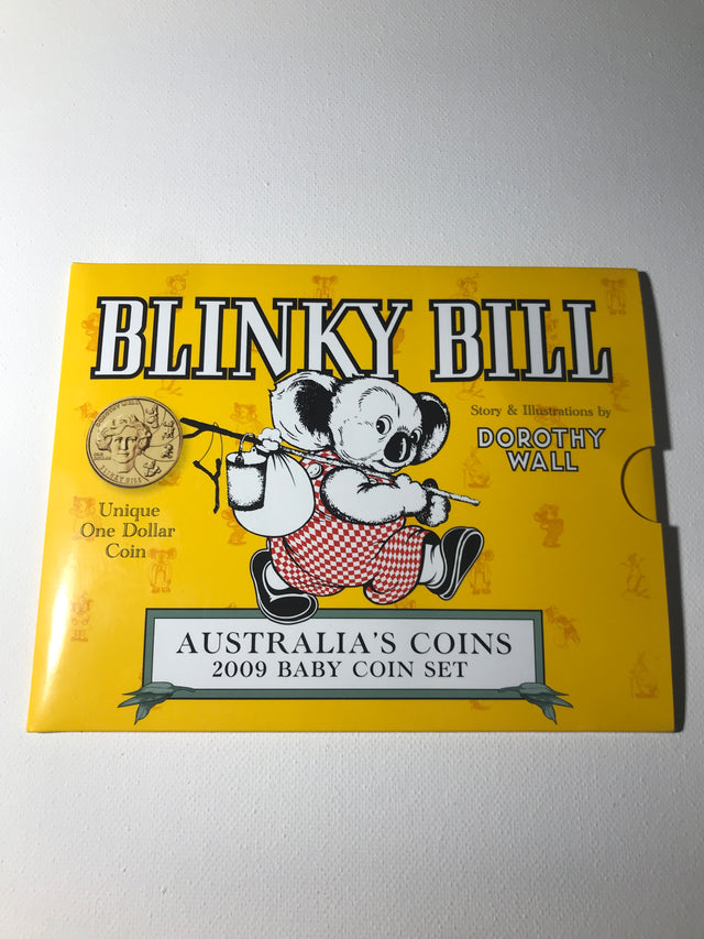 2009 BLINKY BILL Uncirculated Baby Coin Set with token and unique $1 coin design.