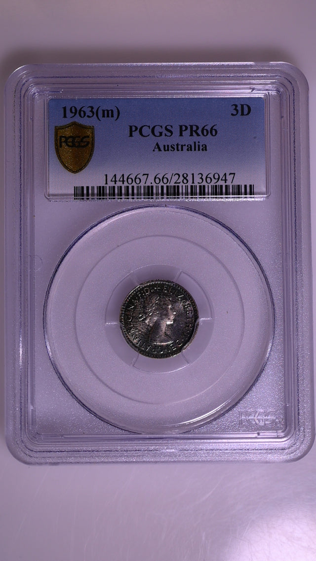 1963(m) Australian Proof Threepence - PCGS PR66 is backordered and will ship as soon as it is back in stock.