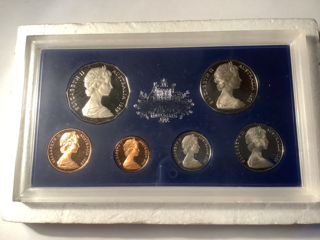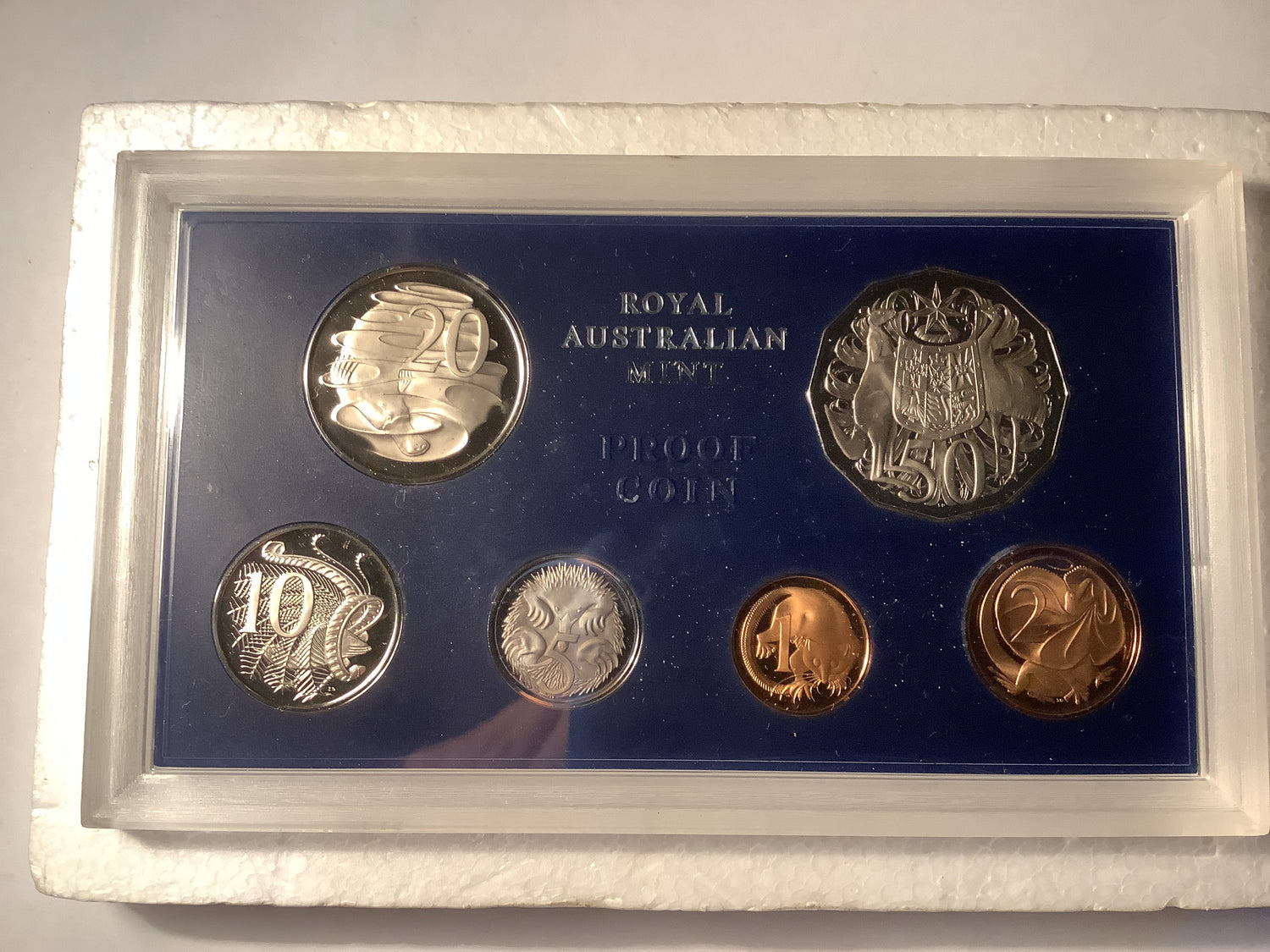 Includes six Australian coins struck to proof quality and housed in a clear perspex display case.