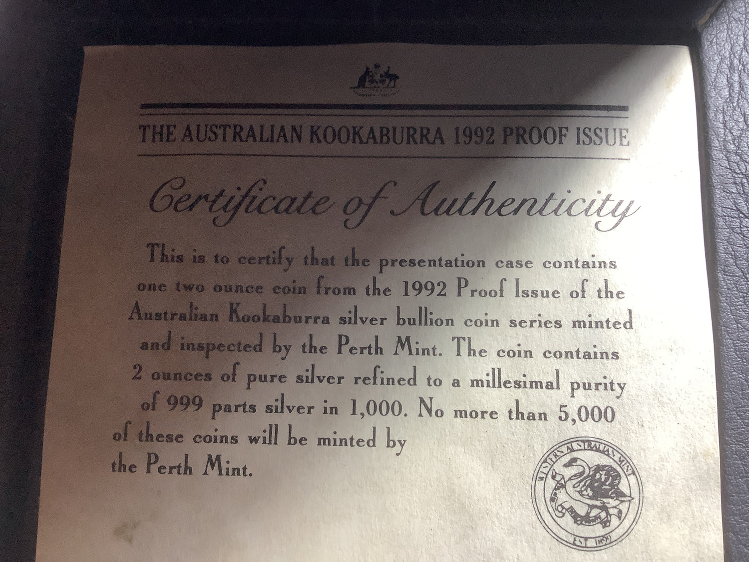 1992 Kookaburra 2 Ounce Silver Proof Coin. is backordered and will ship as soon as it is back in stock.