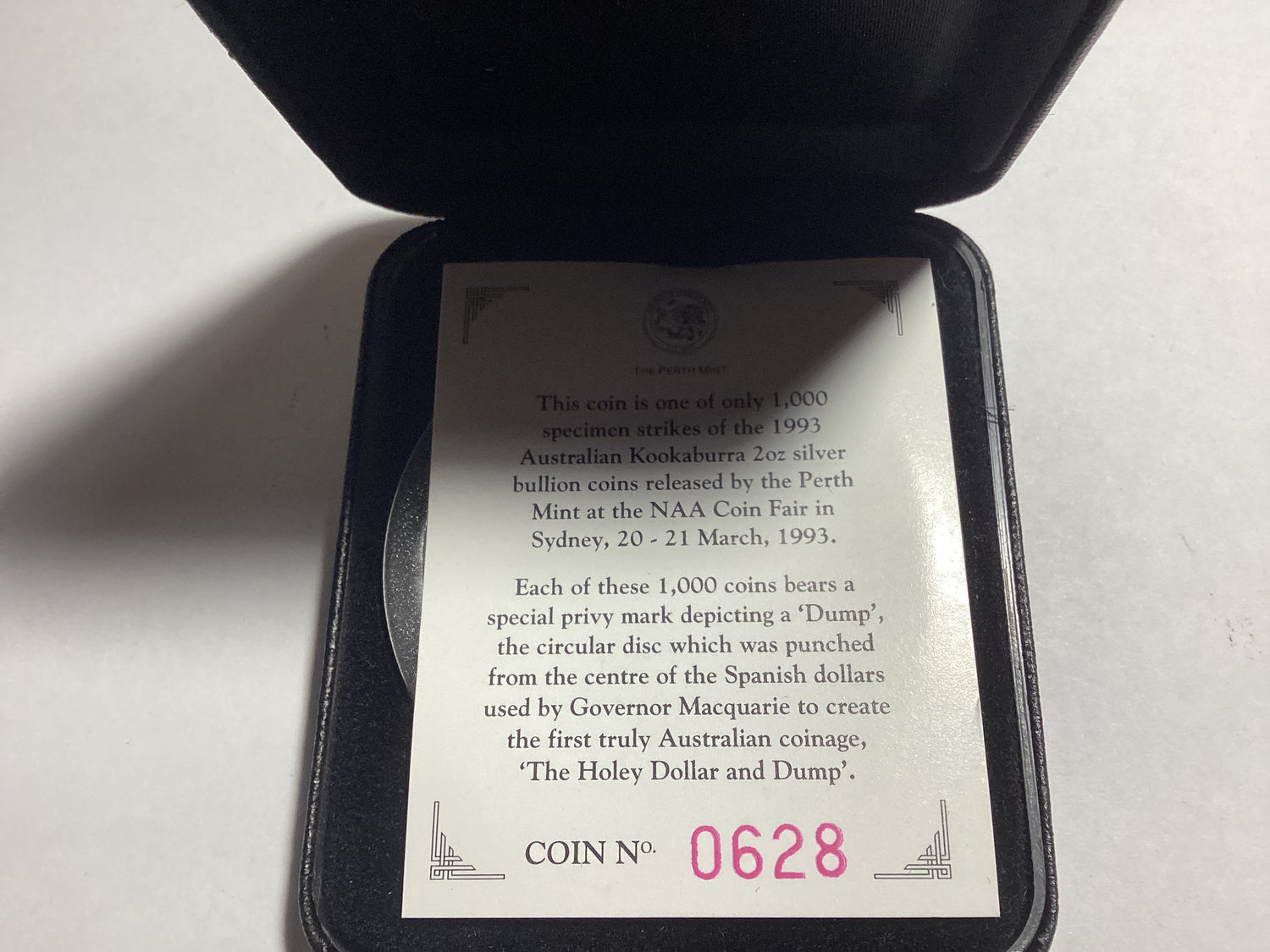 1993 $2 2oz Silver Special Kookaburra. NAA Coin Fair Sydney. Dump Privy Mark. 1000 made. is backordered and will ship as soon as it is back in stock.