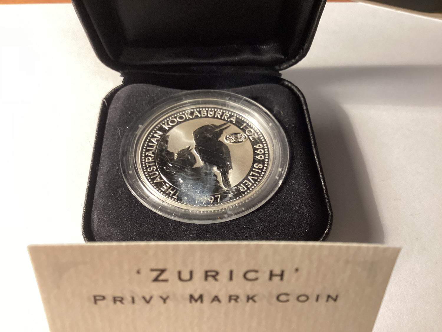 1997 $1 Kookaburra. 1oz Silver Coin. ‘Zurich’ Privy Mark.