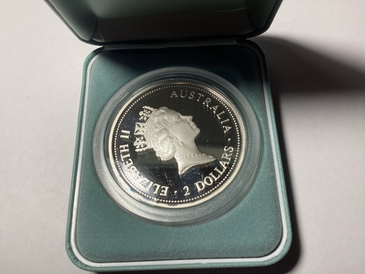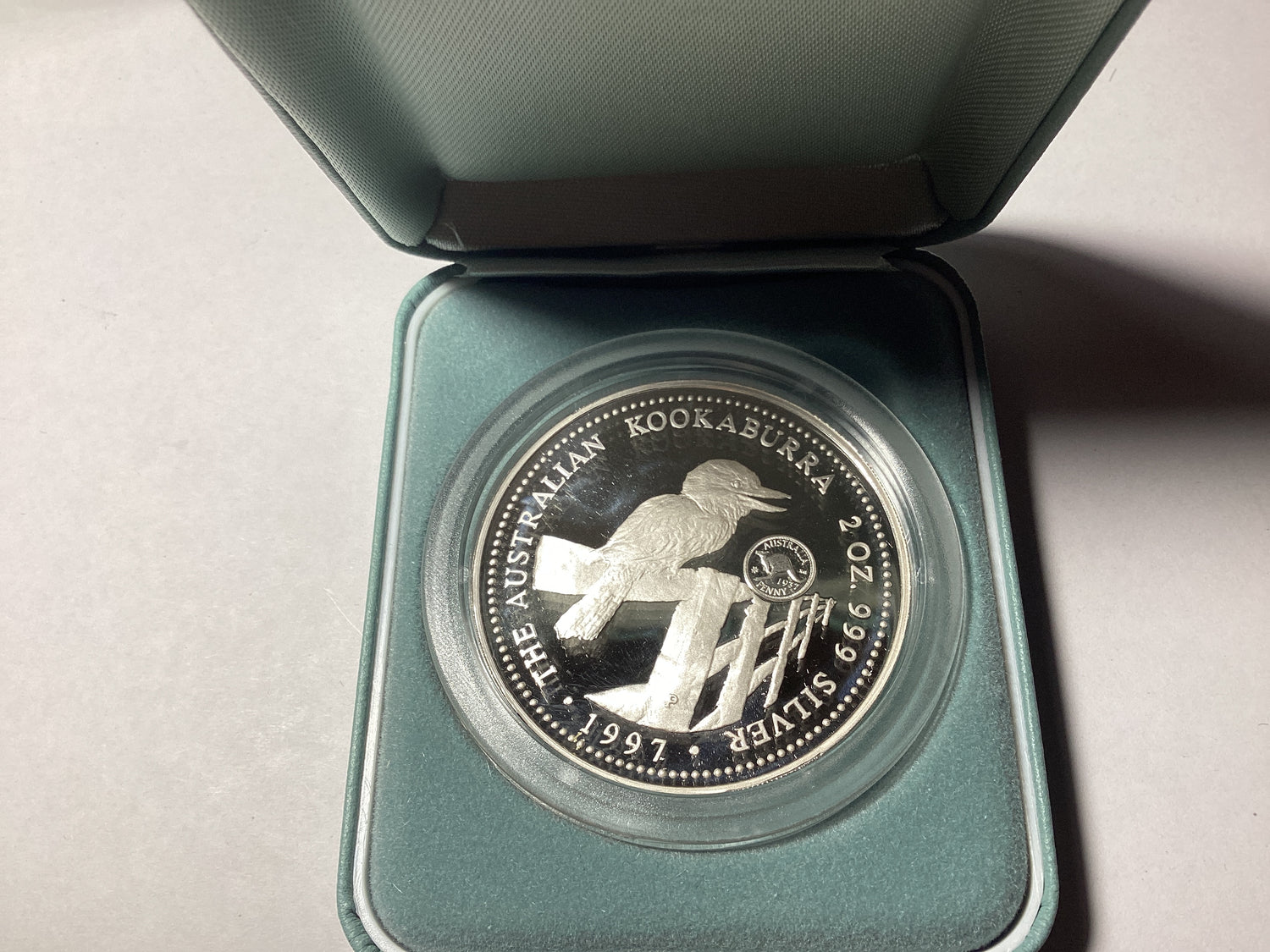 1997 $2 2oz Silver Kookaburra Proof. Penny Privy Mark. 1500 made is backordered and will ship as soon as it is back in stock.
