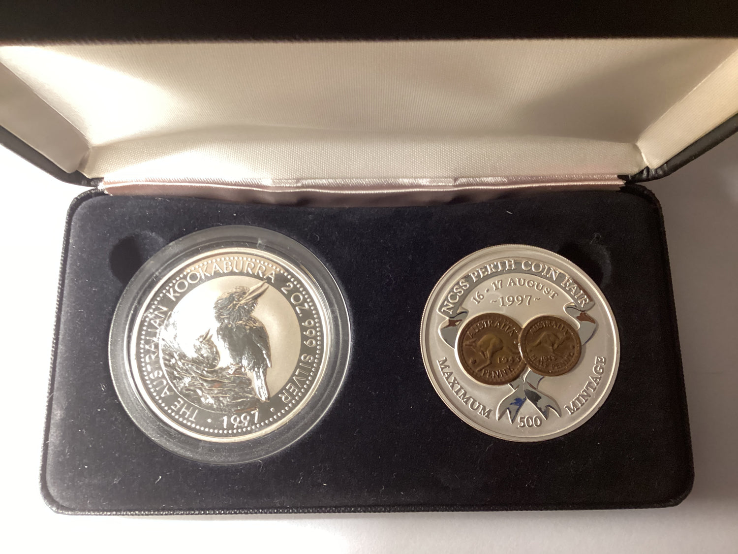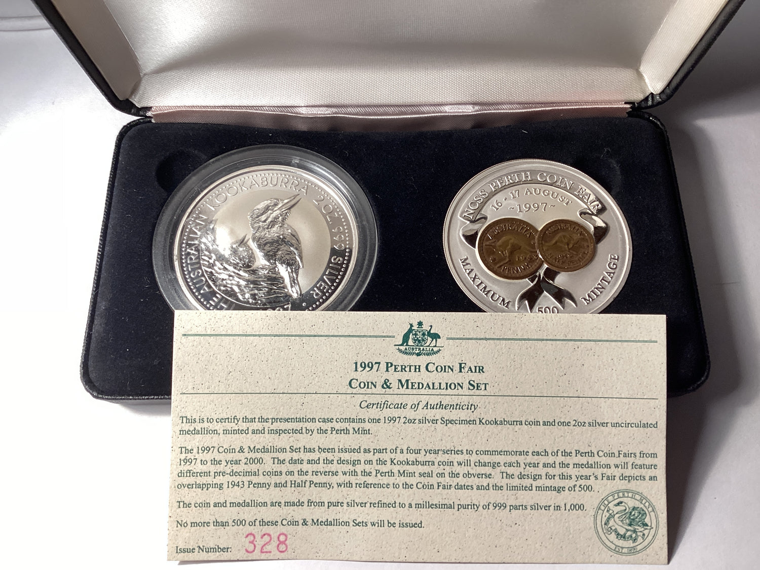 1997 Perth Coin Fair Silver Coin and Medallion Set. 2oz Kookaburra & 2oz Medallion.