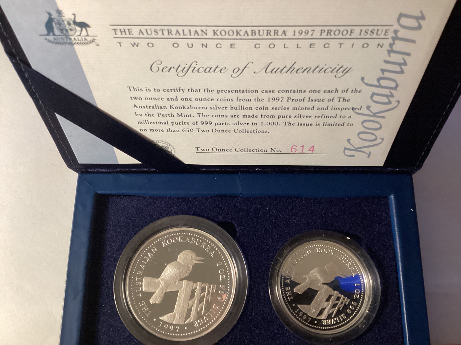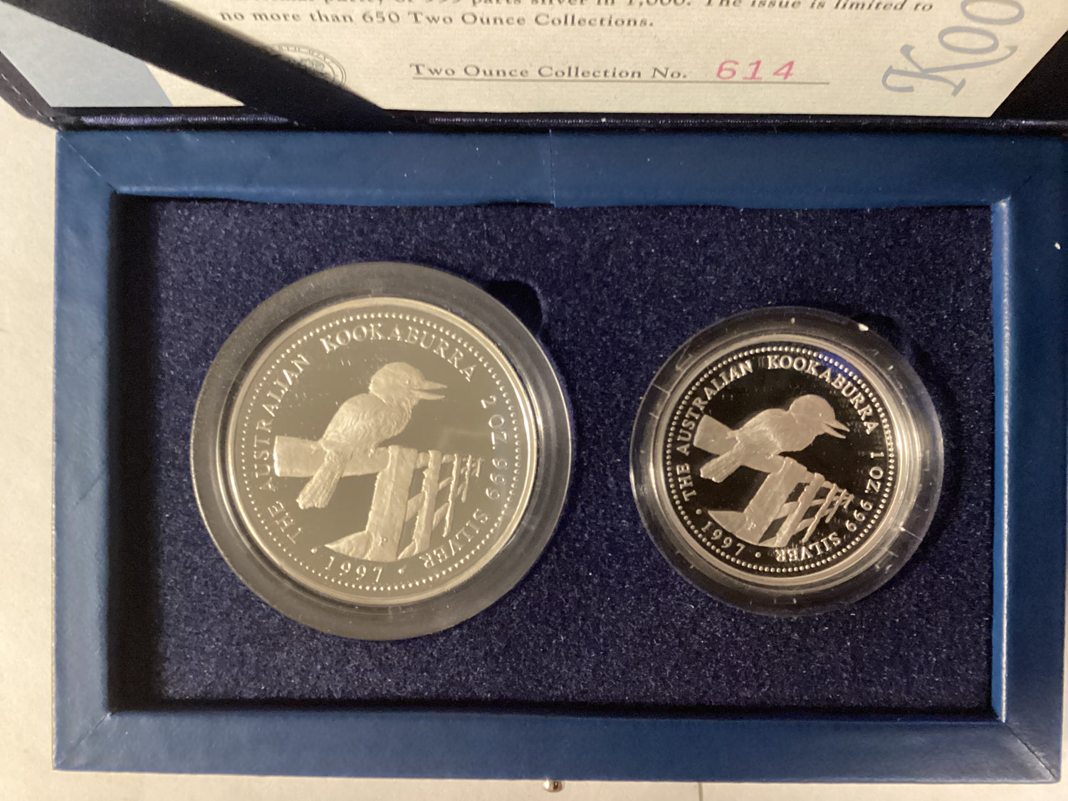 1997 The Australian Kookaburra Proof Issue. 2oz and 1oz Silver Coin Collection.