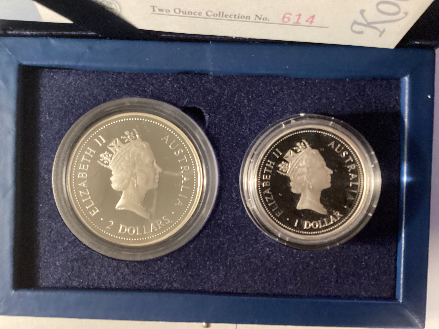 Released in 1997, this two-coin Kookaburra collection features a silver 2oz and 1oz coin.