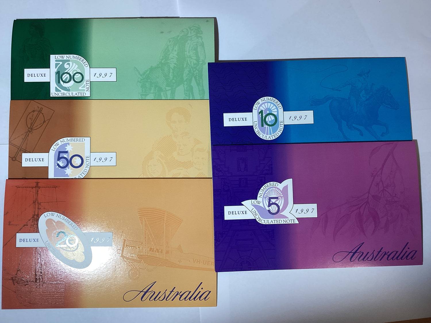 1997 Uncirculated NPA Folder Deluxe Set. $100, $50, $20, $10, $5. is backordered and will ship as soon as it is back in stock.