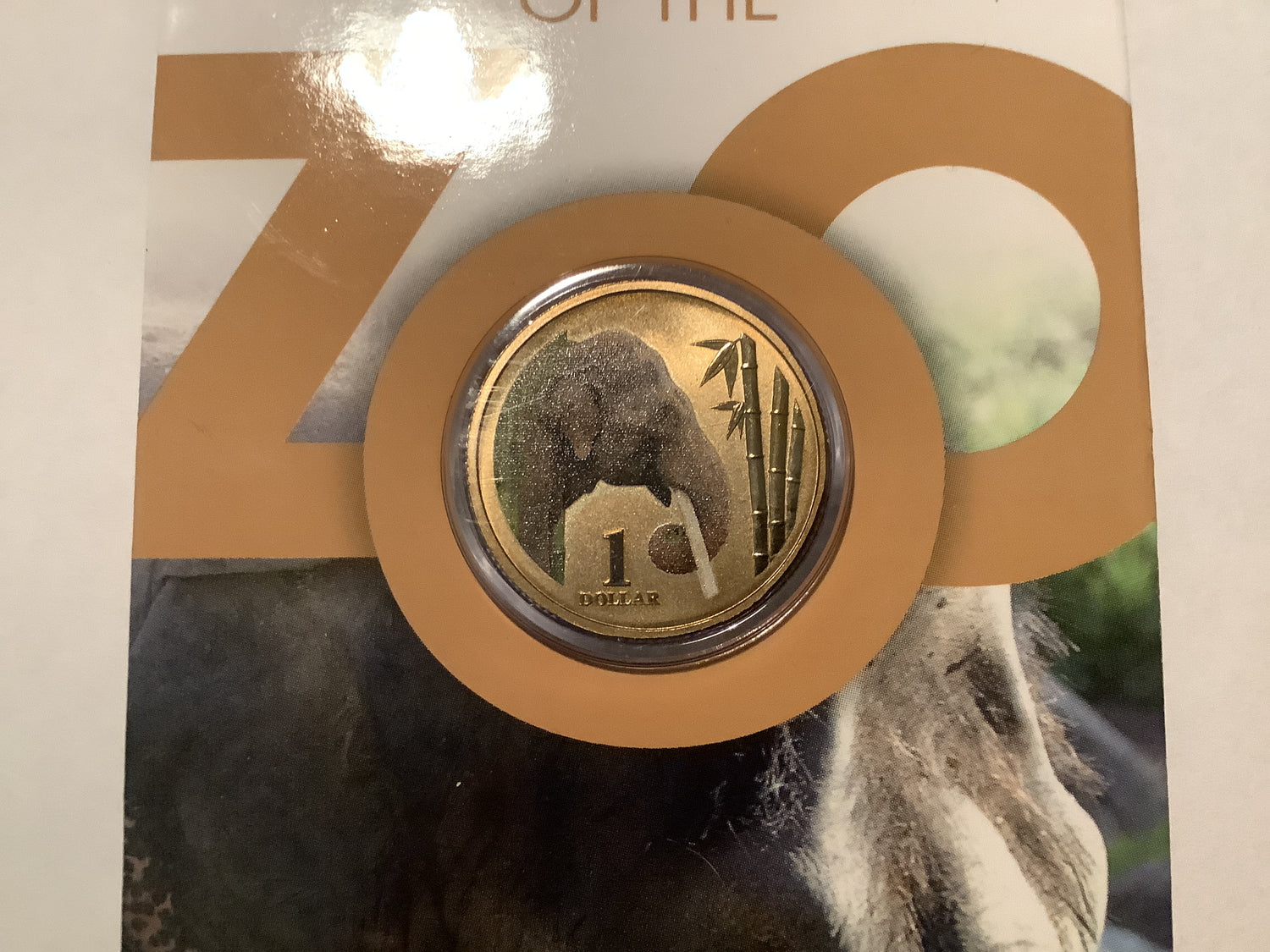 2012 $1 Colour Printed Coin. Animals of the Zoo. Asian Elephant.