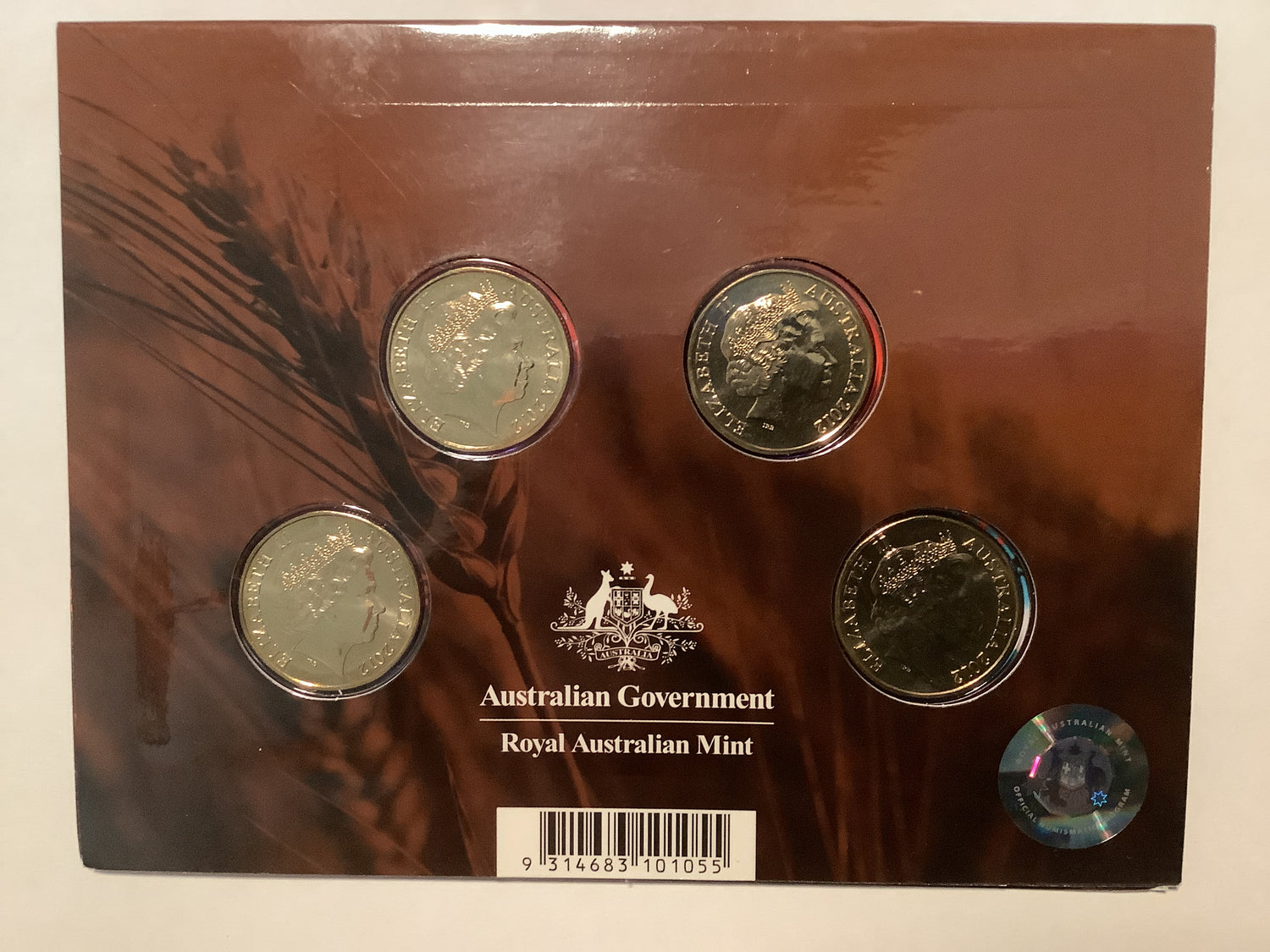 Celebrate Australia's agricultural heritage with the 2012 Wheat Sheaf Dollar Four Coin Mintmark Privy Mark Set.